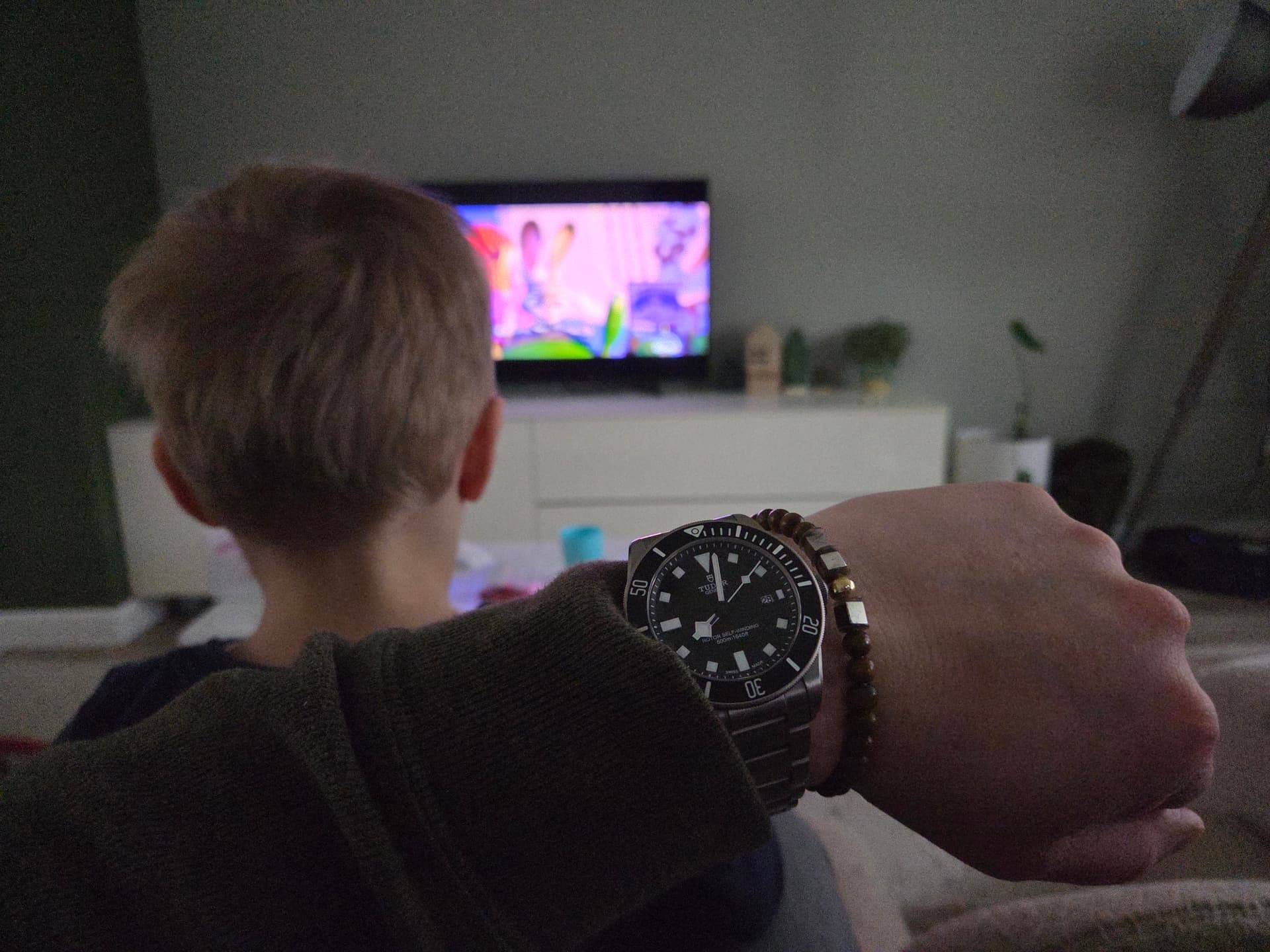 Ochtendjas, krantje, gezin wat zo ontwaakt en deze rakker om: