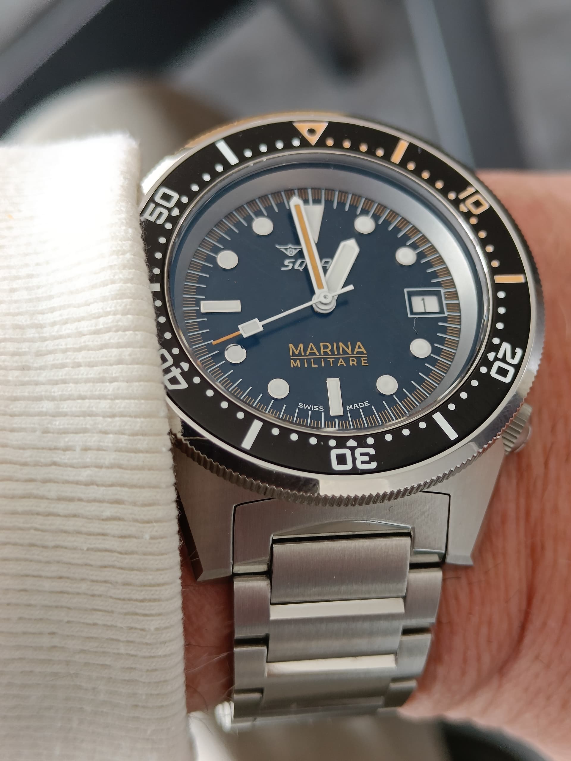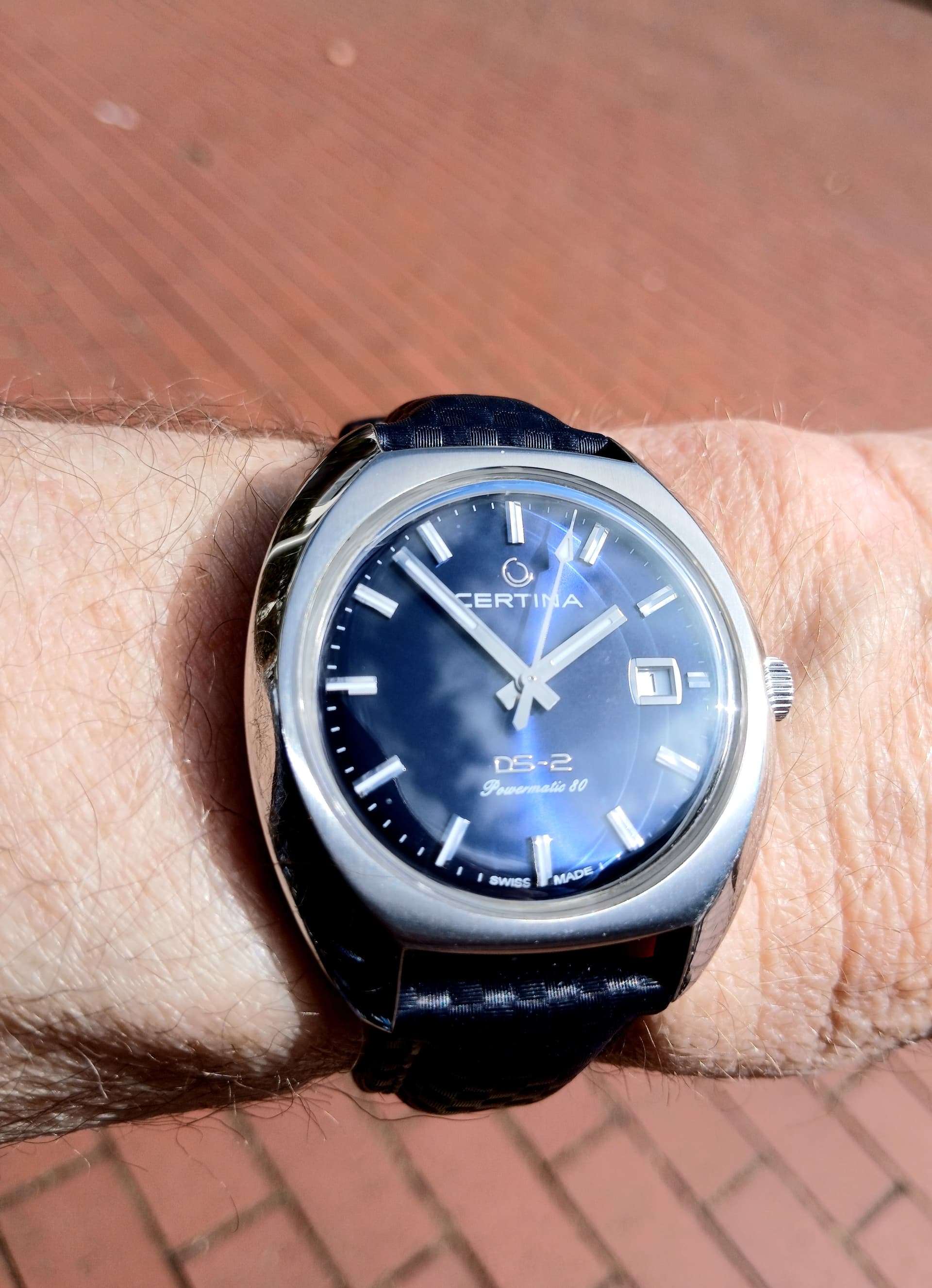 Nu om de pols Longines Spirit, gaat in het blauw natuurlijk.