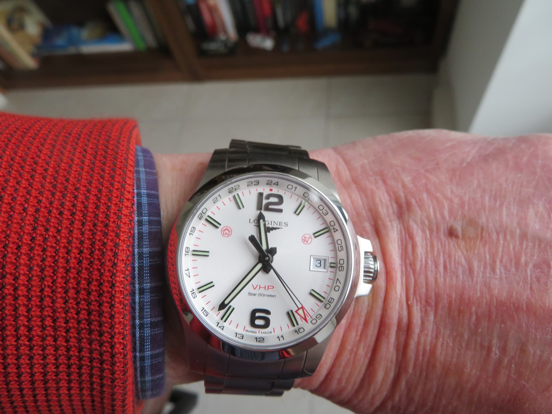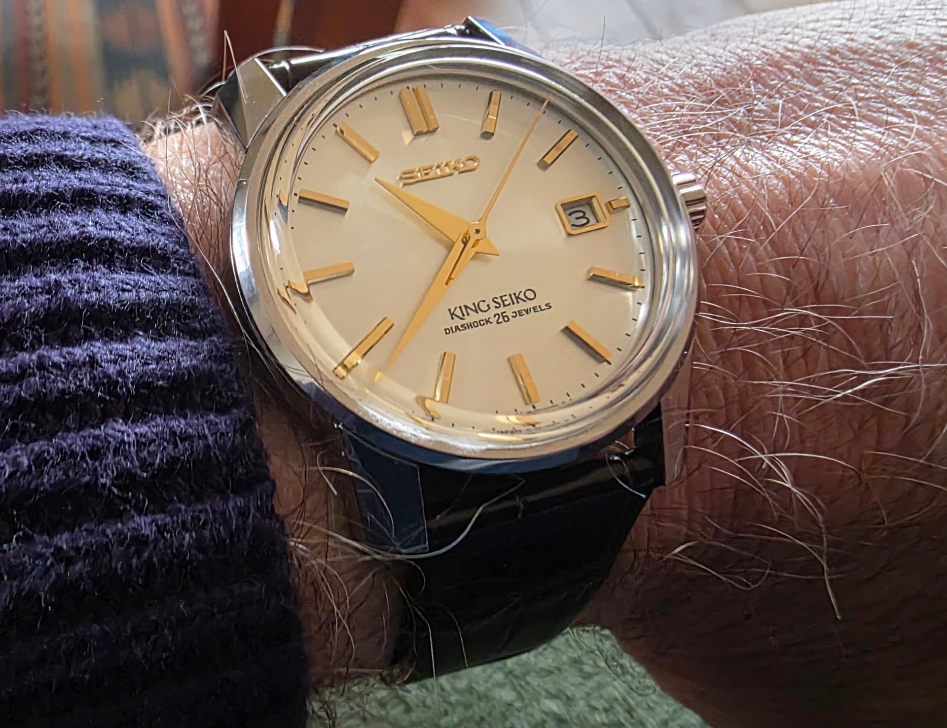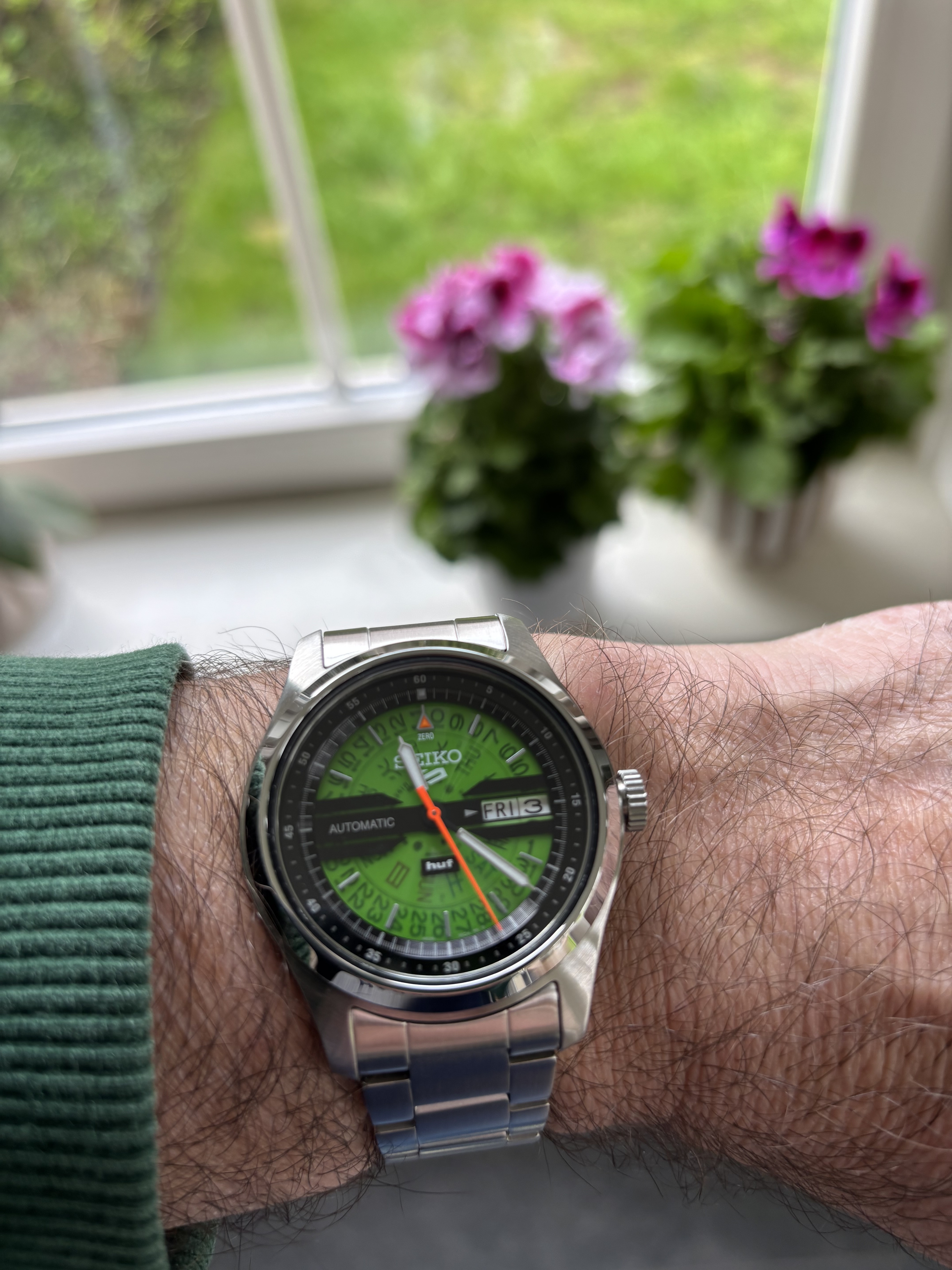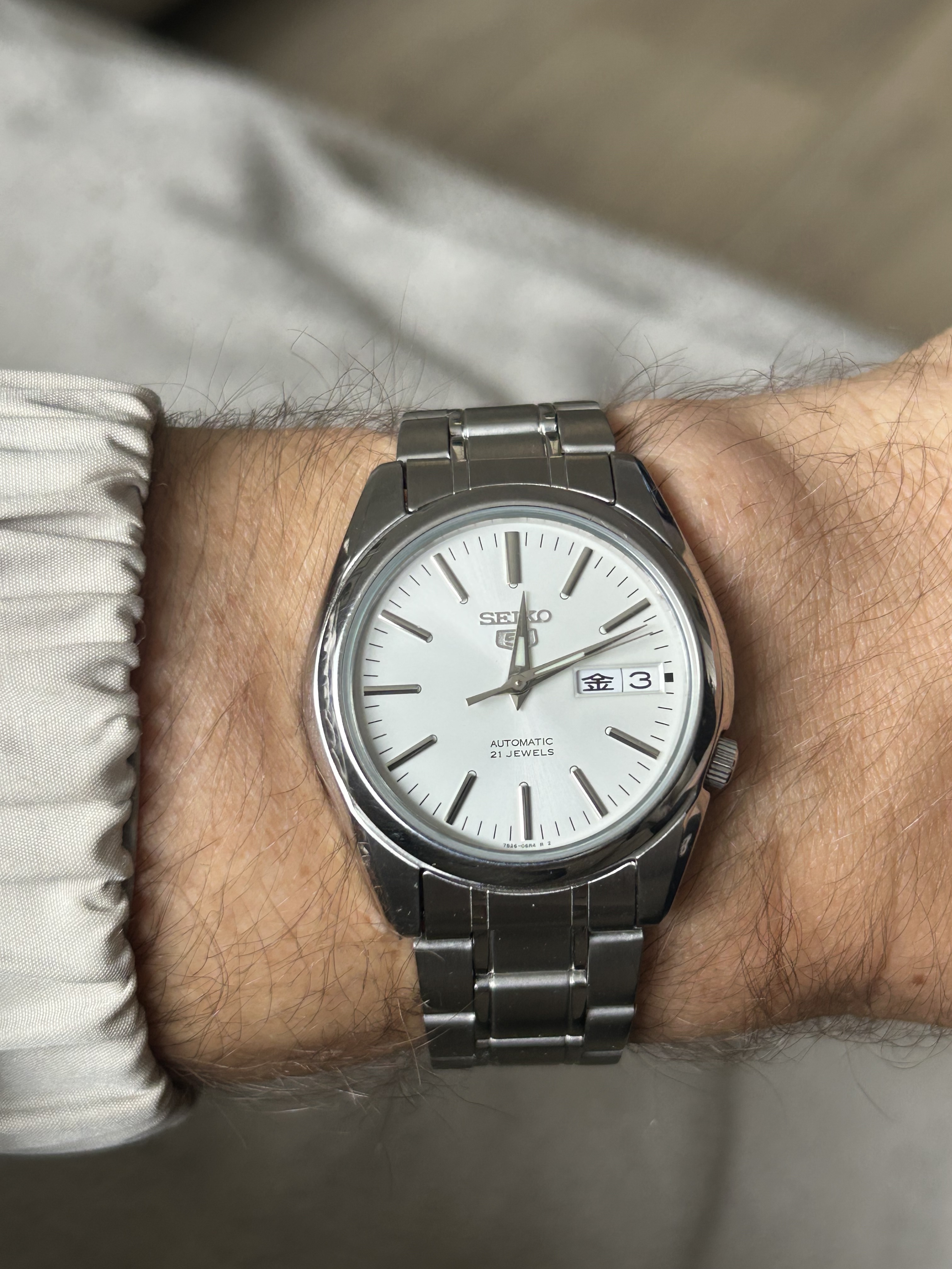 Ik vind het zeker een tof horloge. Deze is de 40mm SPB465, 46mm L2L. Zeer draagbaar op mijn 17cm pols. De plaat is grijs/groen/bruin door het patroon. Wijzers en indices zijn frosted wat een interessant effect geeft tov de donkere plaat. De band is zeer aangenaam met boonvormige links en hidden butterfly sluiting. Ze zijn met deze lijn voor understated gegaan en dat zint mij wel.