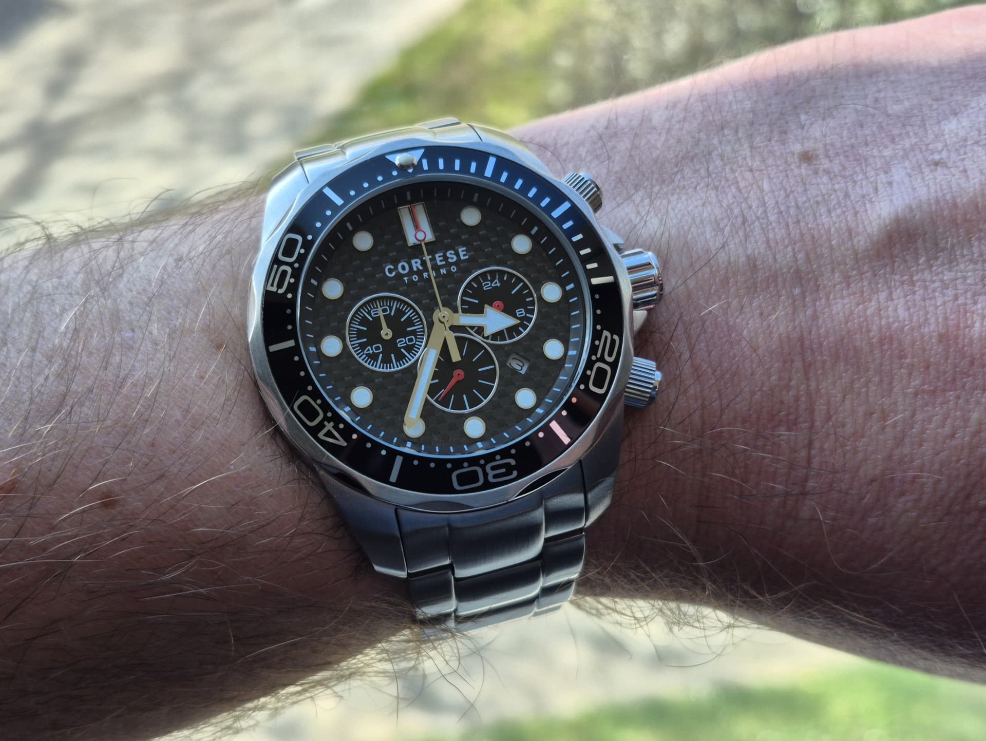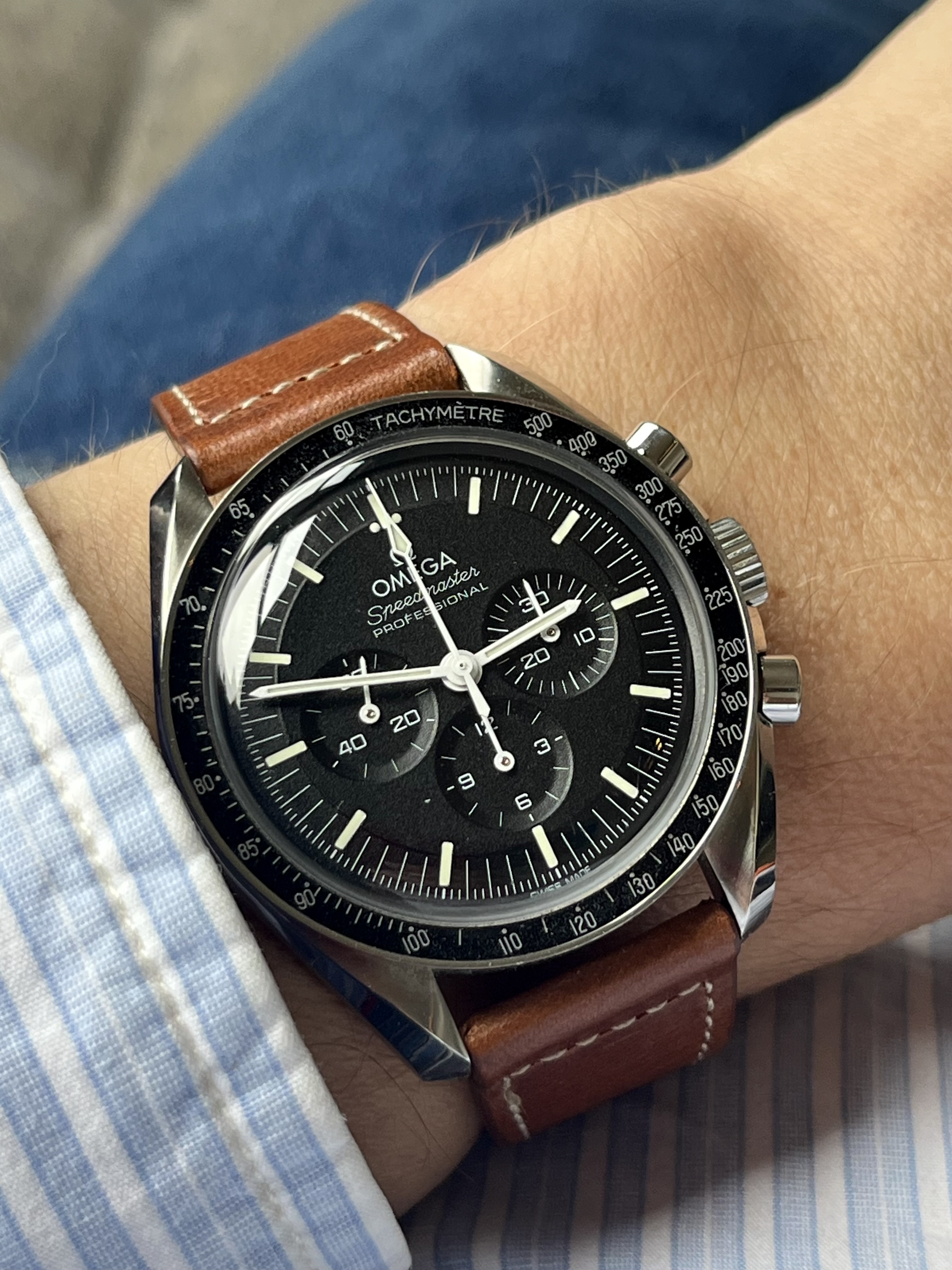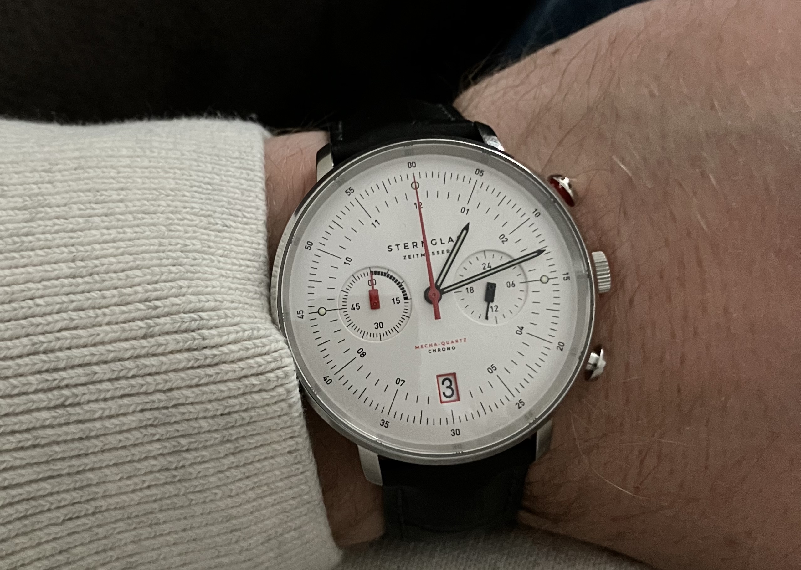 Bij binnenkomst op een basic zwarte Hirsch Toronto band gezet aangezien een OE NATO hem wat “bulky” maakt naar mijn mening.