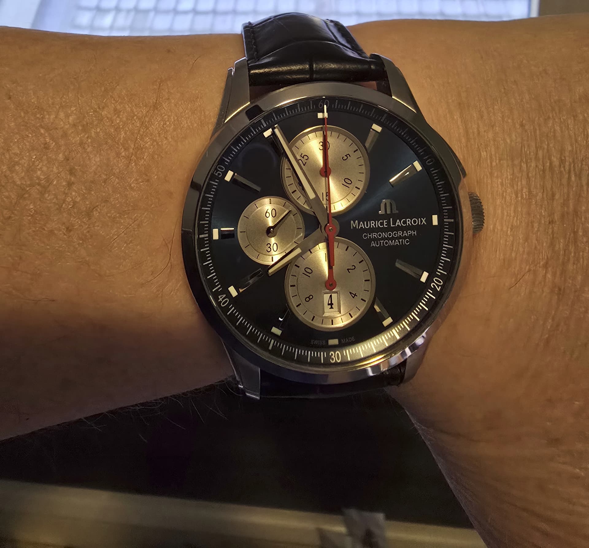 Je hebt m wel een upgrade gegeven met een leren band.