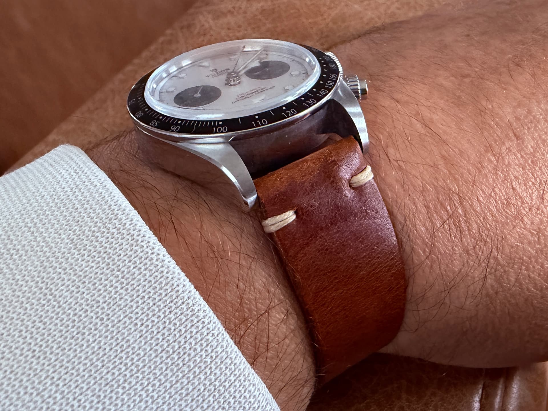 Vandaag m’n BB Chrono Panda op bruin leer van Bulang and Sons, matchend met schoenen en riem, zoals het heurt…