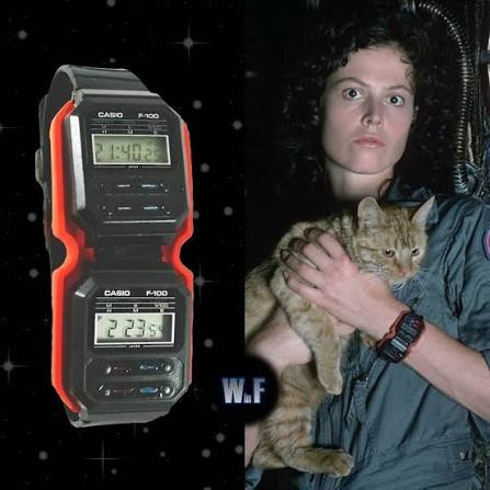 Alien. Sci-fi film. Origineel twee Casio F-100’s. Die zijn niet meer te vinden of te betalen. Dit zijn twee A-100’s. Die zijn goedkoop. De oranje houder is een 3D print en ook goed te vinden.