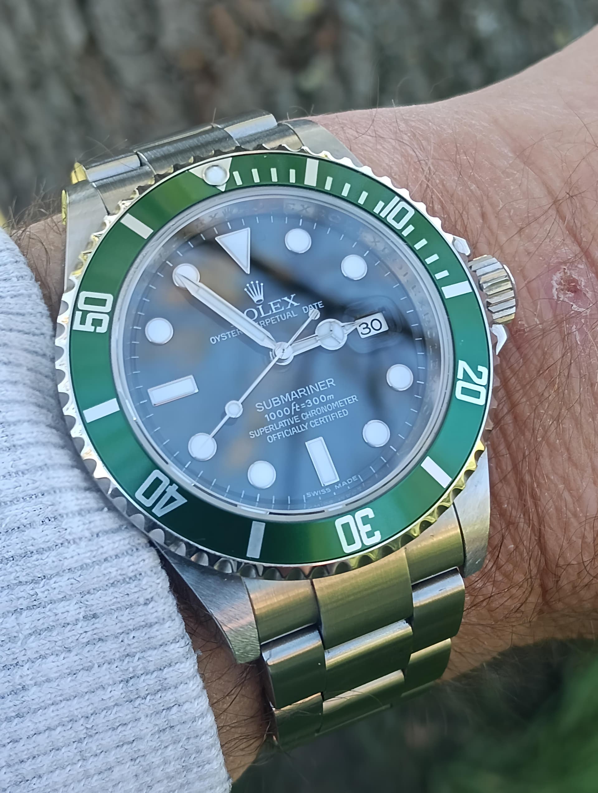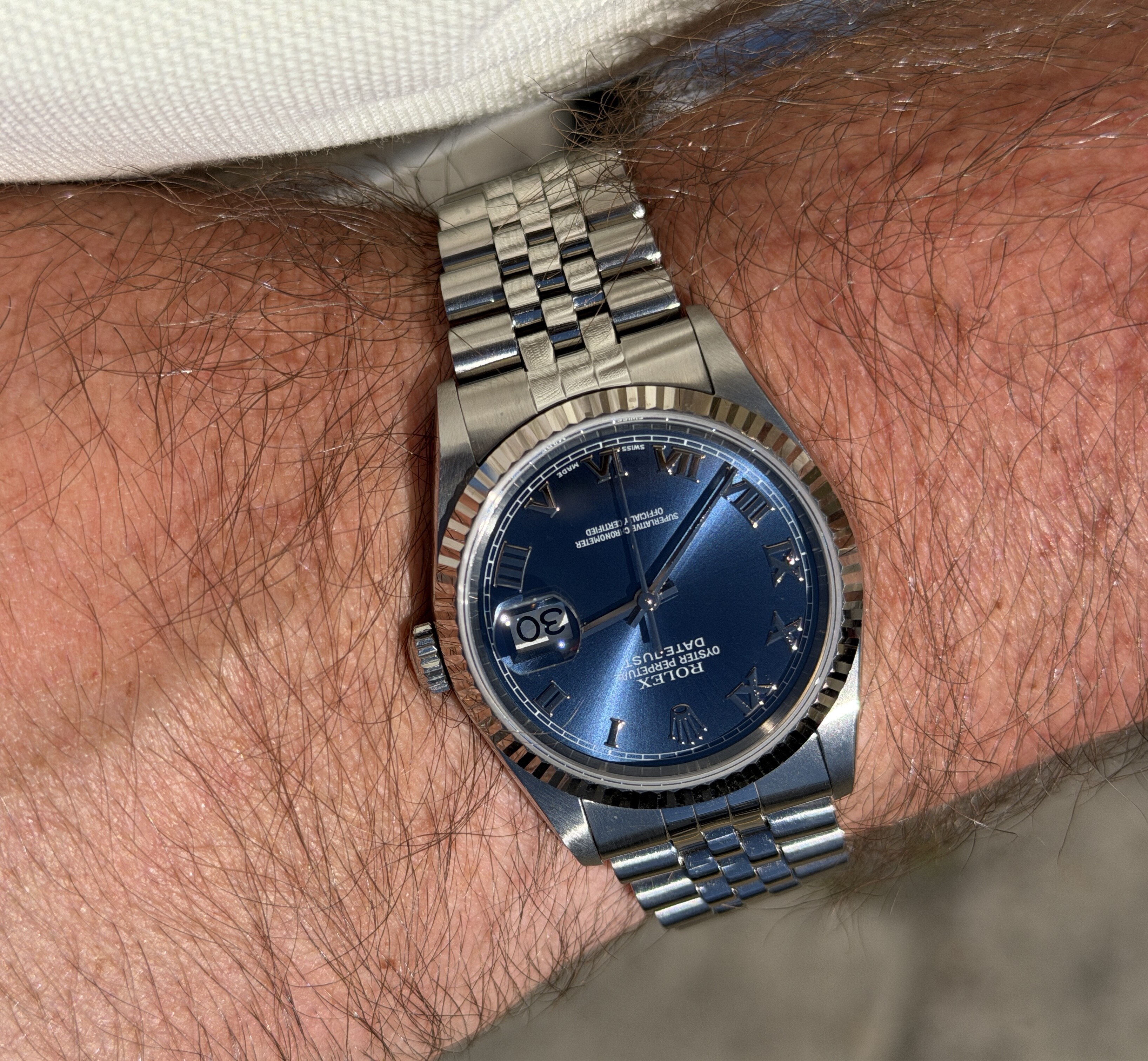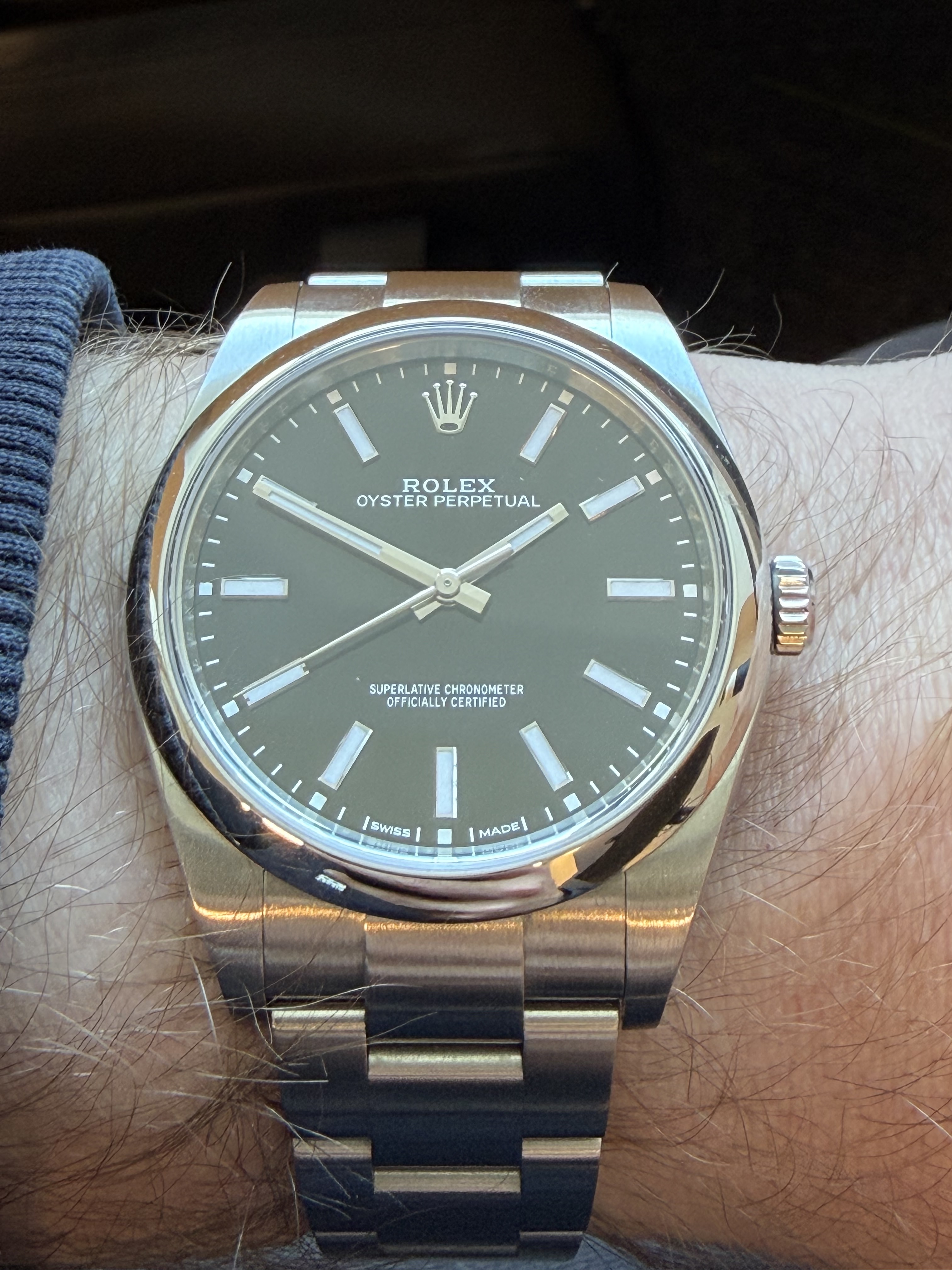 Naargelang de lichtinval is het center van de plaat donkerder of lichter dan de minutenschaal.