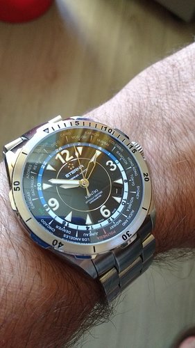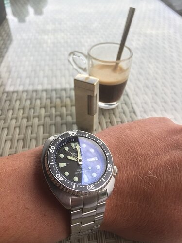 Bewaard als souvenir van een kennis die deze gadget serie ontwierp, heb ook nog ergens een vulpen set. Vond hem ondanks zijn 18mm size wel aardig matchen met zo´n nos canvas Guss WO II bandje (zie horlogemarkt)Rolling on steel baby