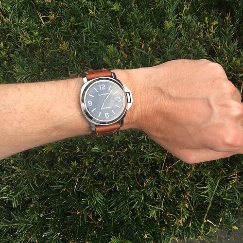 Potver! Mooie klatser is me dat ook. Ik vond Panerais nooit zo boeiend tot ik ze eens ‘in the flesh’ gezien heb bij een AD. Geweldig ontwerp imo. Je bandje matcht er ook leuk bij.