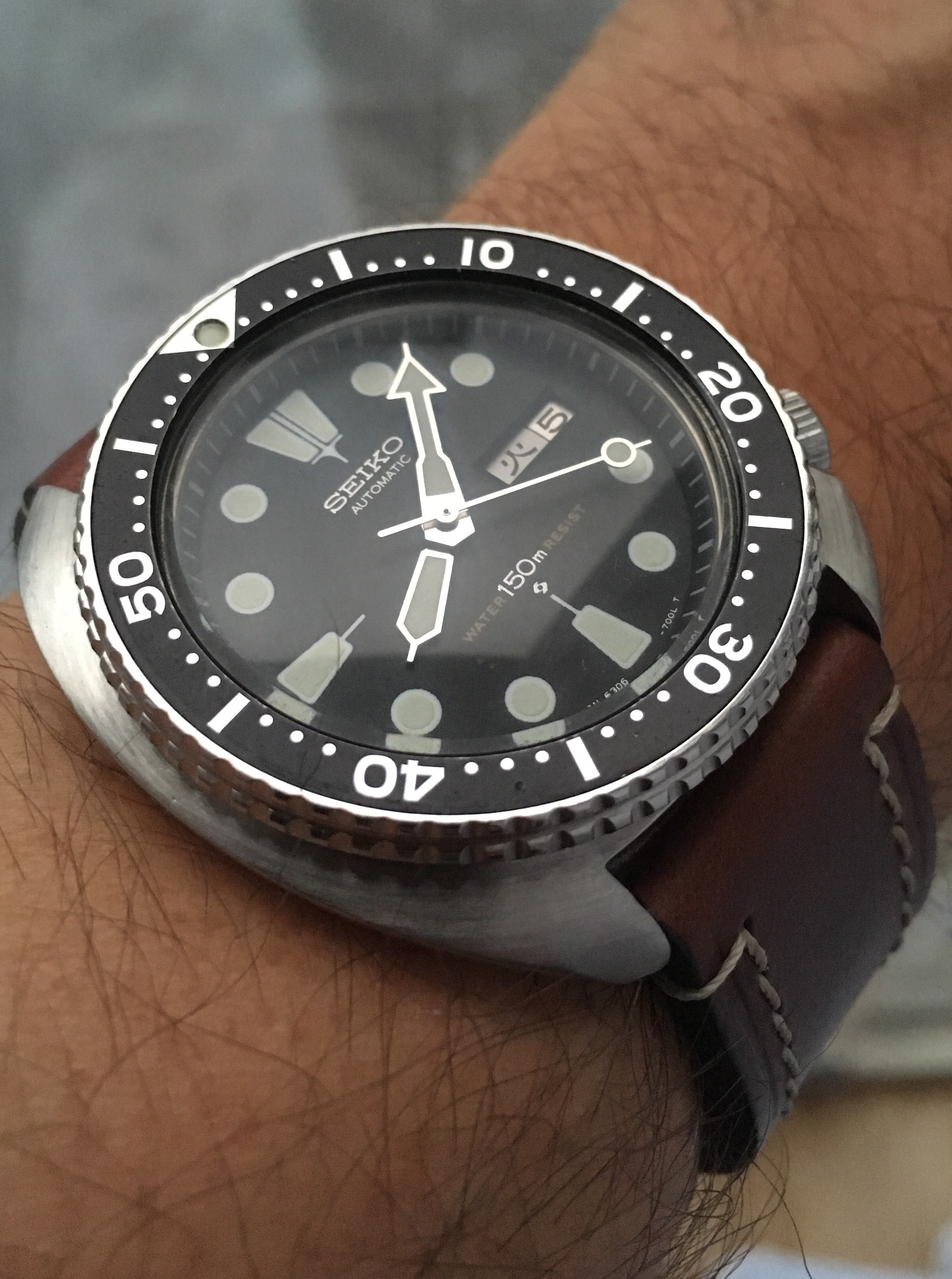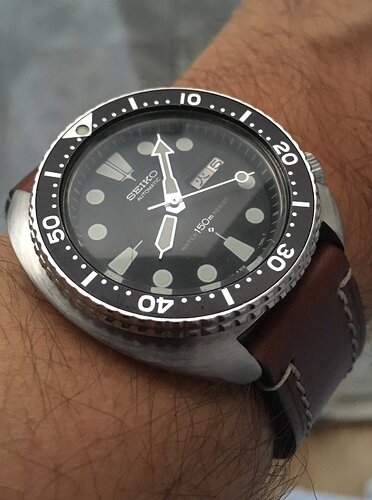 Geen vintage, waarschijnlijk niet eens een echte DD en toch aantrekkelijk genoeg bevonden om de waarde te vermenigvuldigen door er een leren bandje aan te prikken.