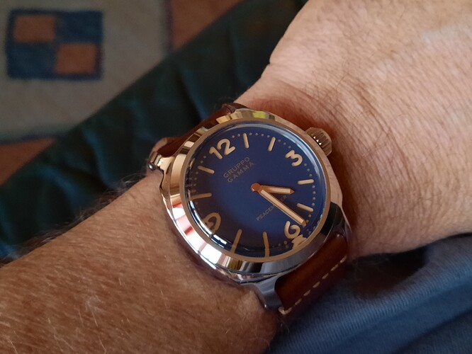 Dit is de Speedmaster FOIS (First Omega In Space). De wijzers zijn anders omdat het horloge is gebaseerd op de Speedmaster die astronaut Walter Schirra in 1962 mee de ruimte in nam.