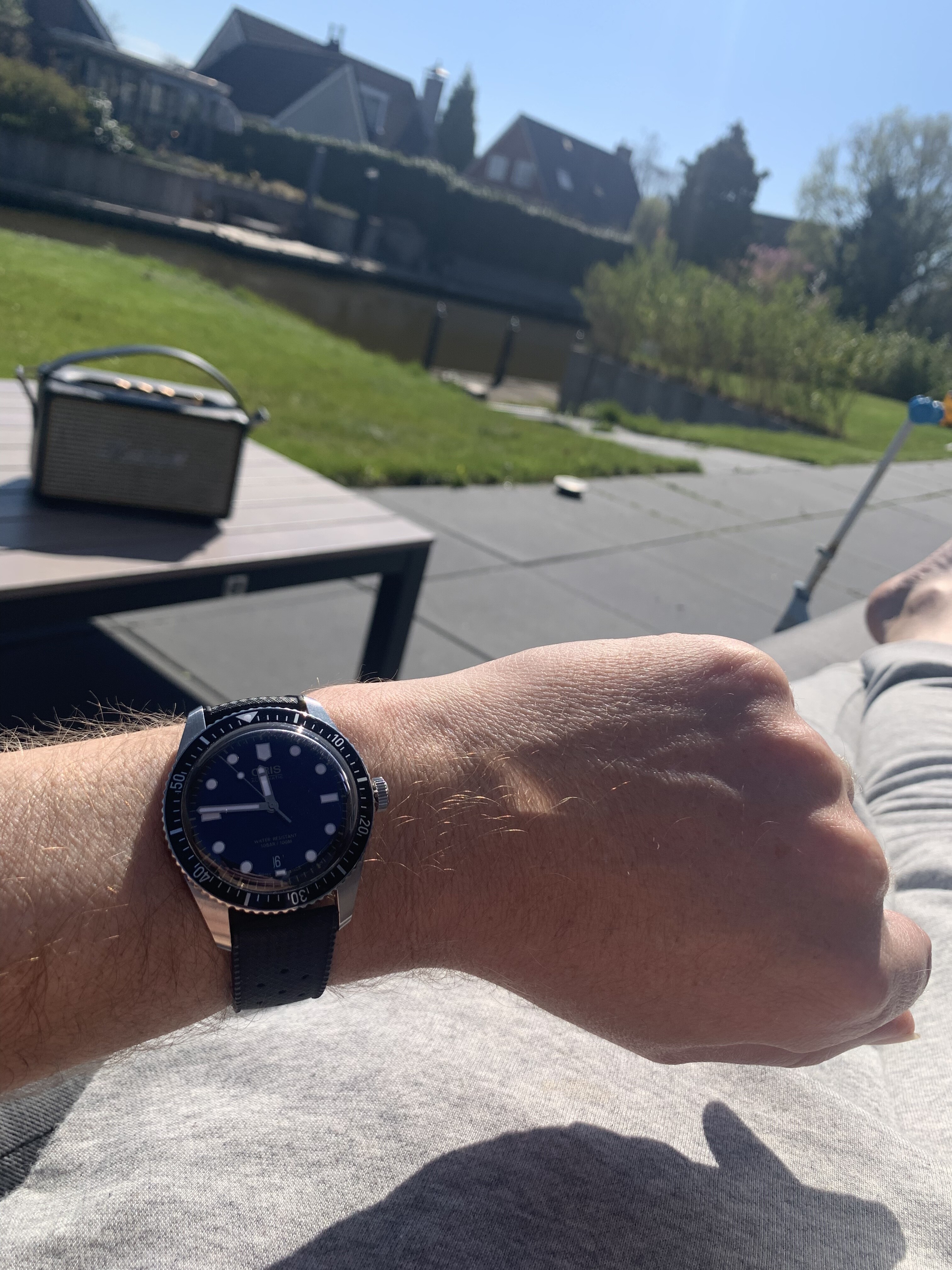 Volgens mij heb ik m wel eens gepast. Deze heeft alles geborsteld en een matte bezel. Misschien wel de coolste toolwatch in de Aquis serie.