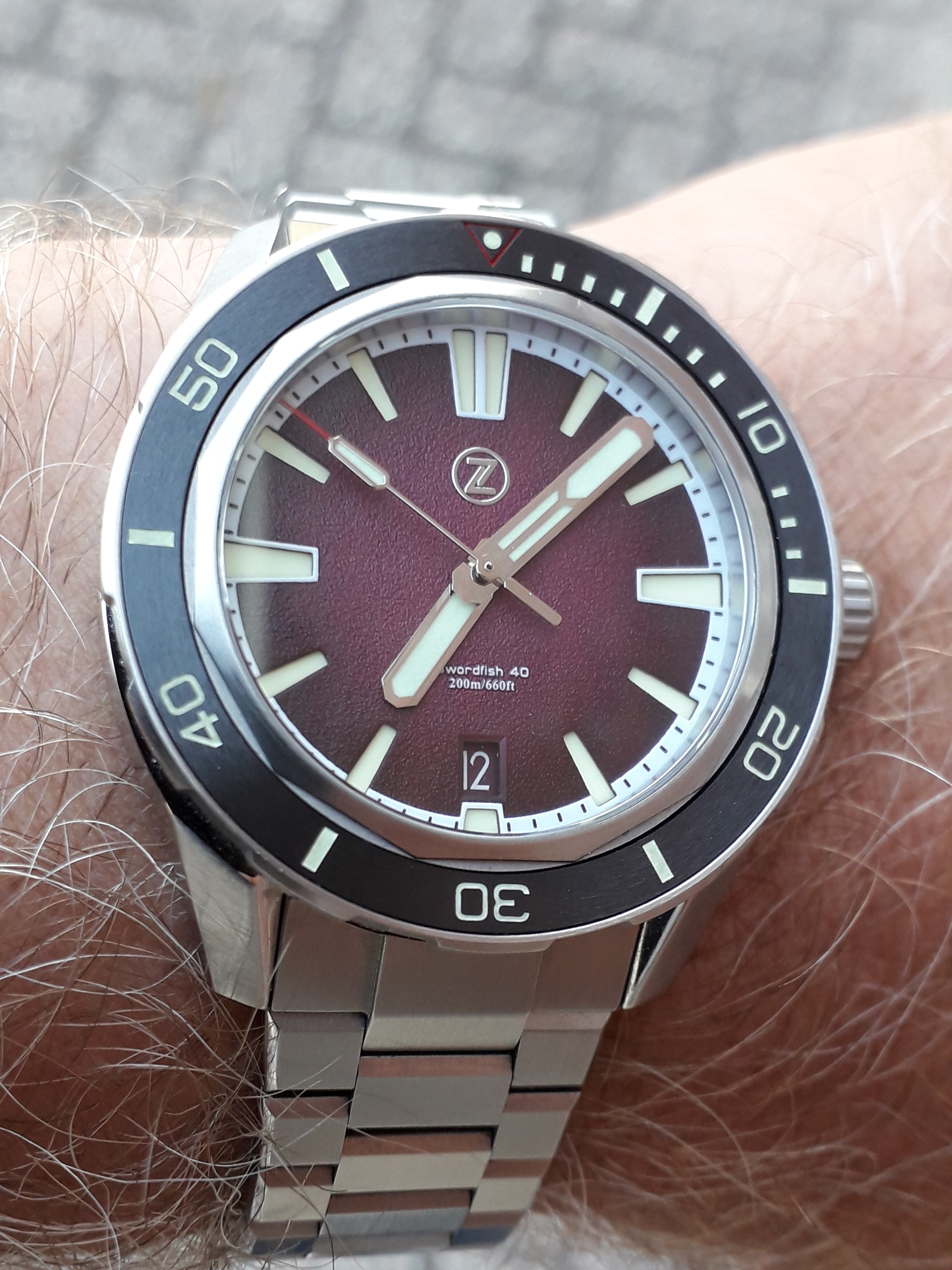 Het gaat vandaag heel warm worden, dus een duik in het kanaal of een plas is wel erg aantrekkelijk. Daarom de Victorinox INOX Professional Diver alvast om de pols geslingerd (zie NA: Victorinox INOX Professional Diver).