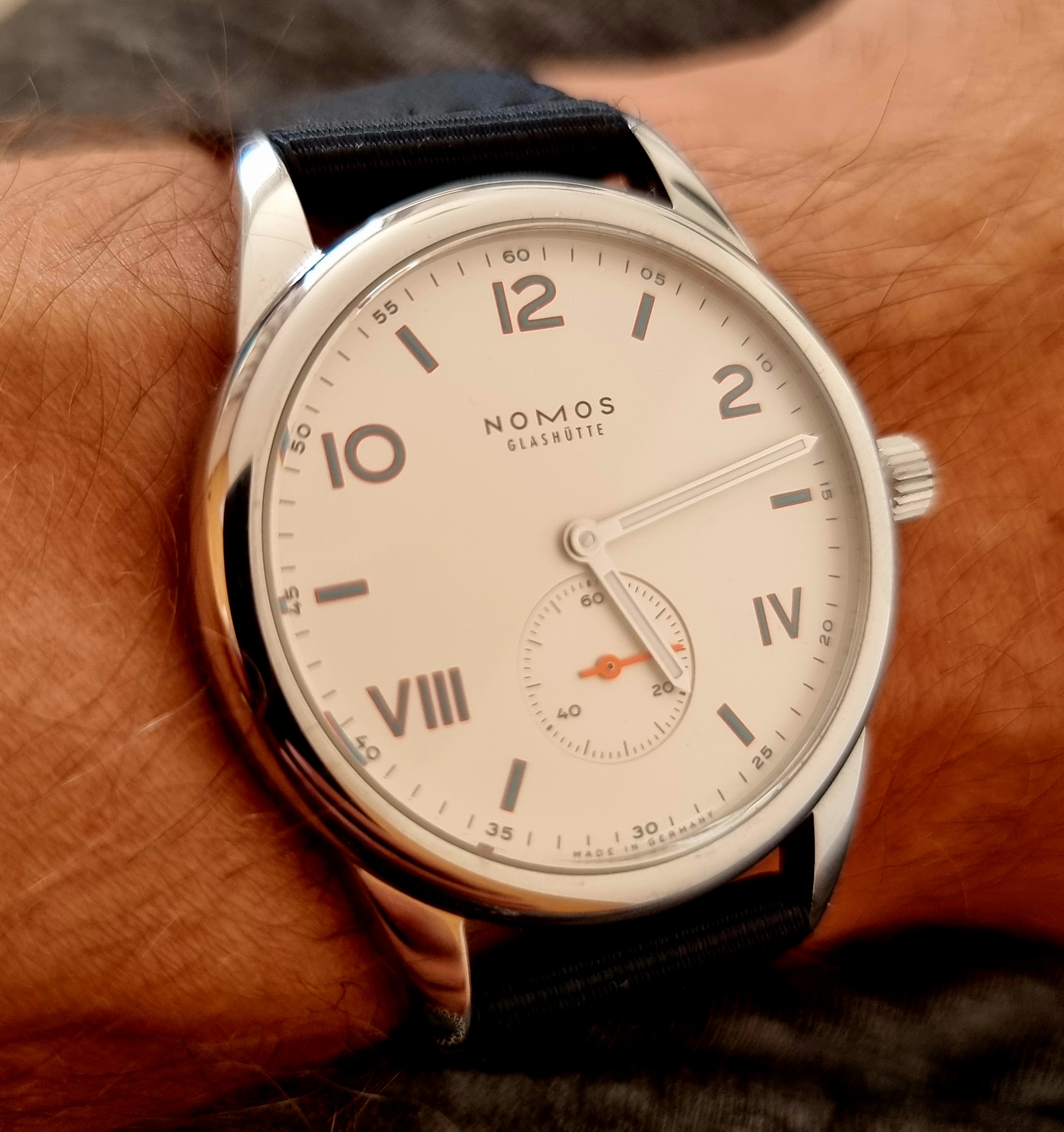 Die is ook gaaf, zo met witte kast en band. Zelf een Mondaine met zilveren kast en zwarte band. Wil ik nog steeds eens een ander bandje op zetten. Wellicht toch maar eens tools daarvoor kopen en wat verschillende bandjes