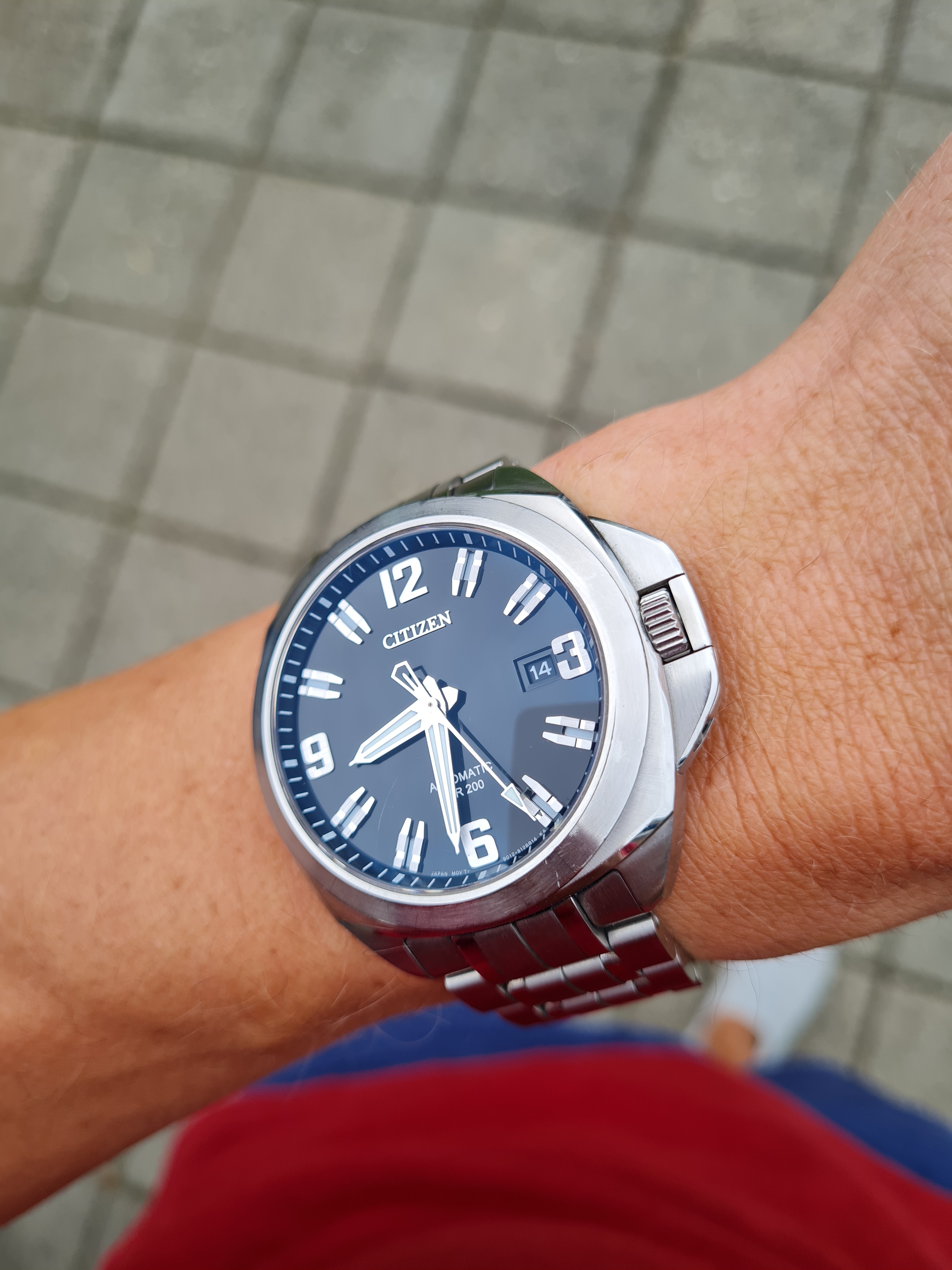 Vandaag in Friesland waarschijnlijk de laatste zonnige dag voordat de herfst invalt, dus een mooie gelegenheid om mijn NA te dragen, want met zonlicht komt de subtiele wijzerplaat, de hoekige kast en die bijzonder fraaie bracelet extra tot zijn recht. (Zie Seiko SARX045 “Deep Blue Tuxedo” – en mosterd na de maaltijd: NA Seiko SARX045 “Deep Blue Tuxedo” - en mosterd na de maaltijd).