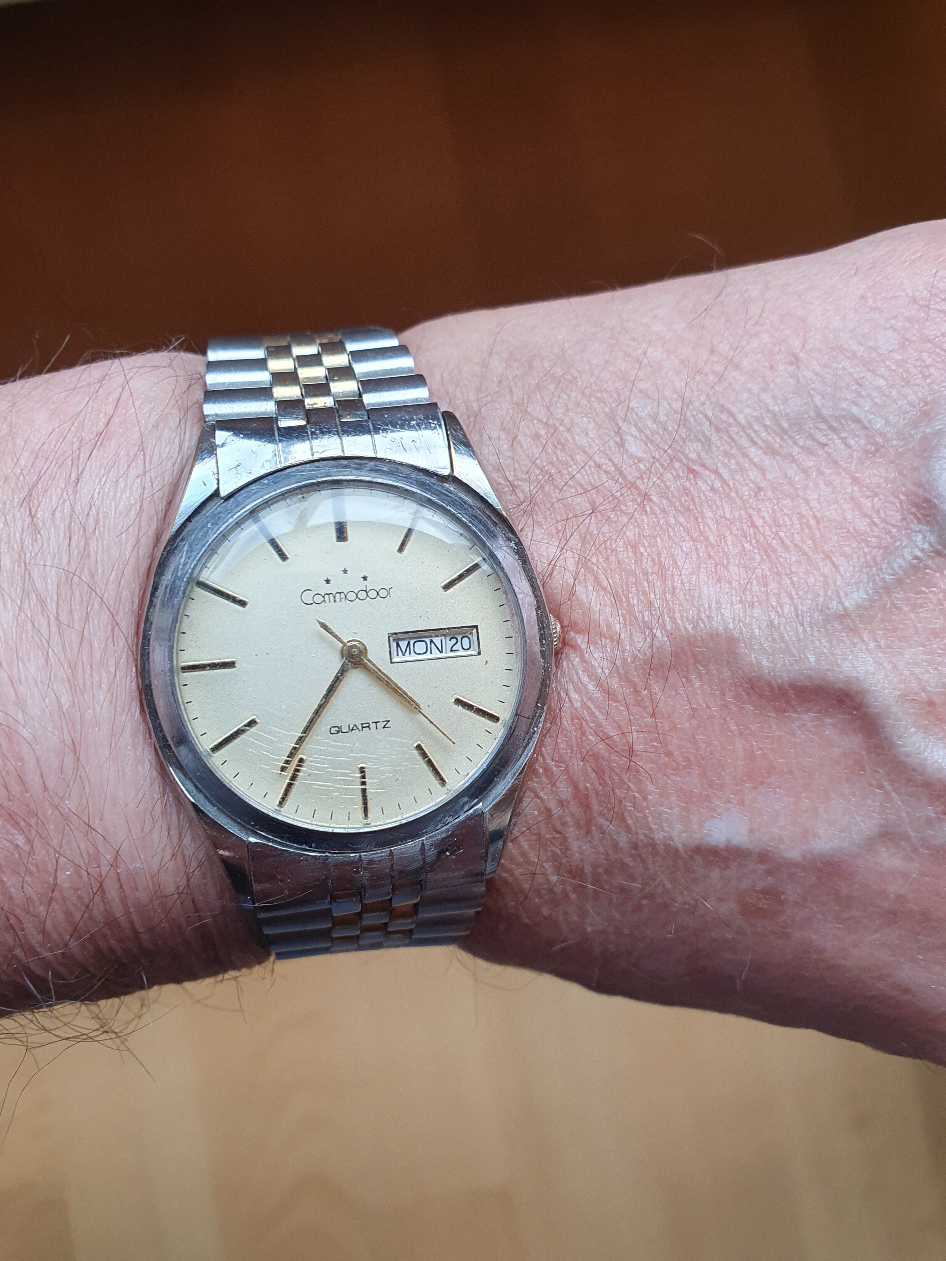Mijn eerste horloge die ik als puber van eigen geld gekocht heb in begin jaren 70. Daarvoor nooit eerder als kind een horloge gehad, horloge was helaas overleden. Tja, geen top merk natuurlijk maar mijn goede vriend @Lexaf nam hem destijds mee om te zien of er nog iets aan gedaan kon worden. Eerste bericht van Lex, jammer Ferry helaas echt overleden. Maar we kennen Lex hier wel, kon het toch niet laten om toch nog een keer aan de slag te gaan met deze Commodoor en ja hoor. Het oudje ging weer lopen als een speer en past nog steeds om de pols. Nogmaals bedankt @Lexaf