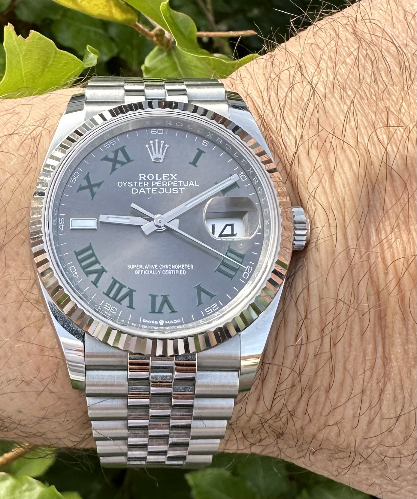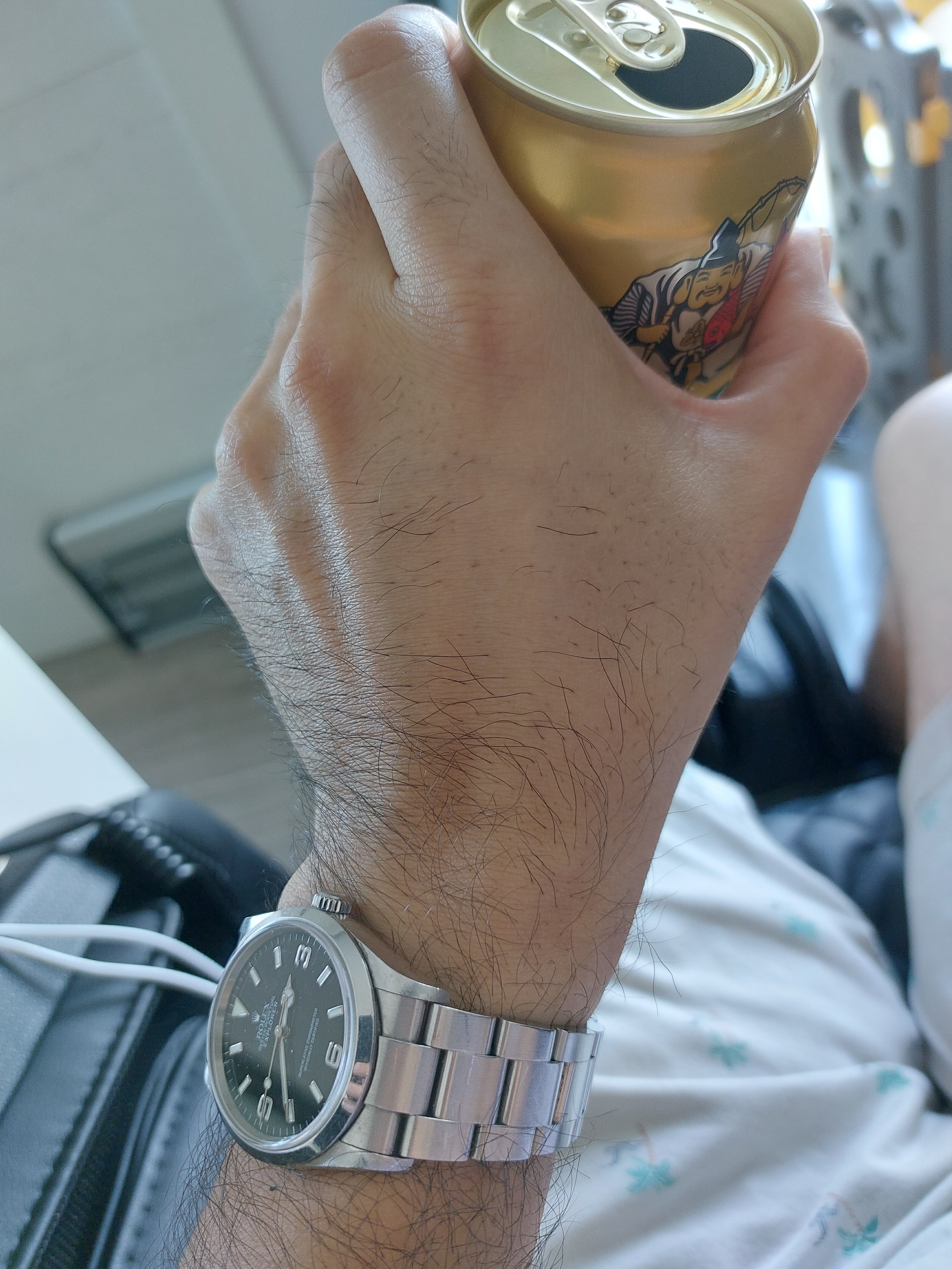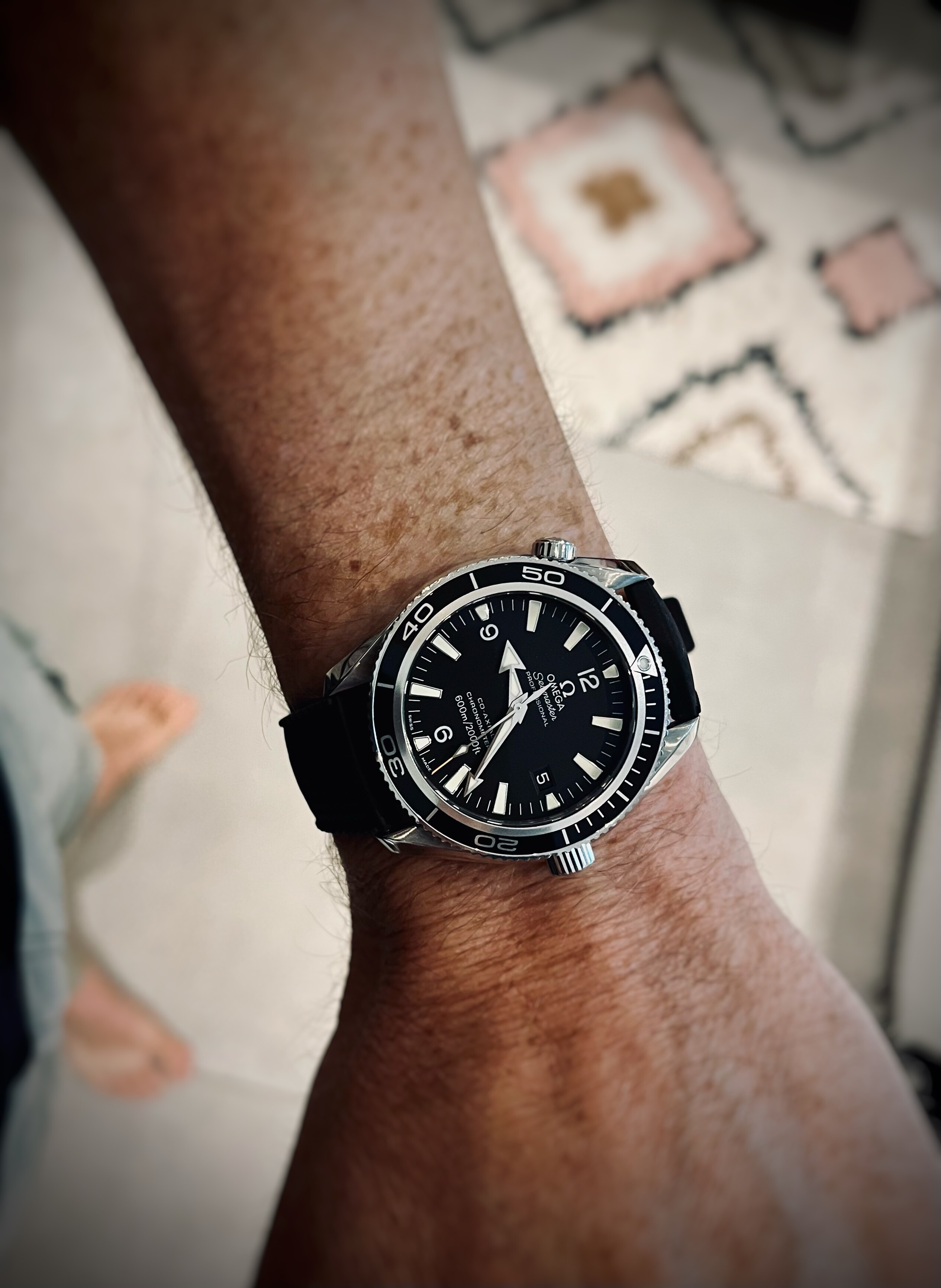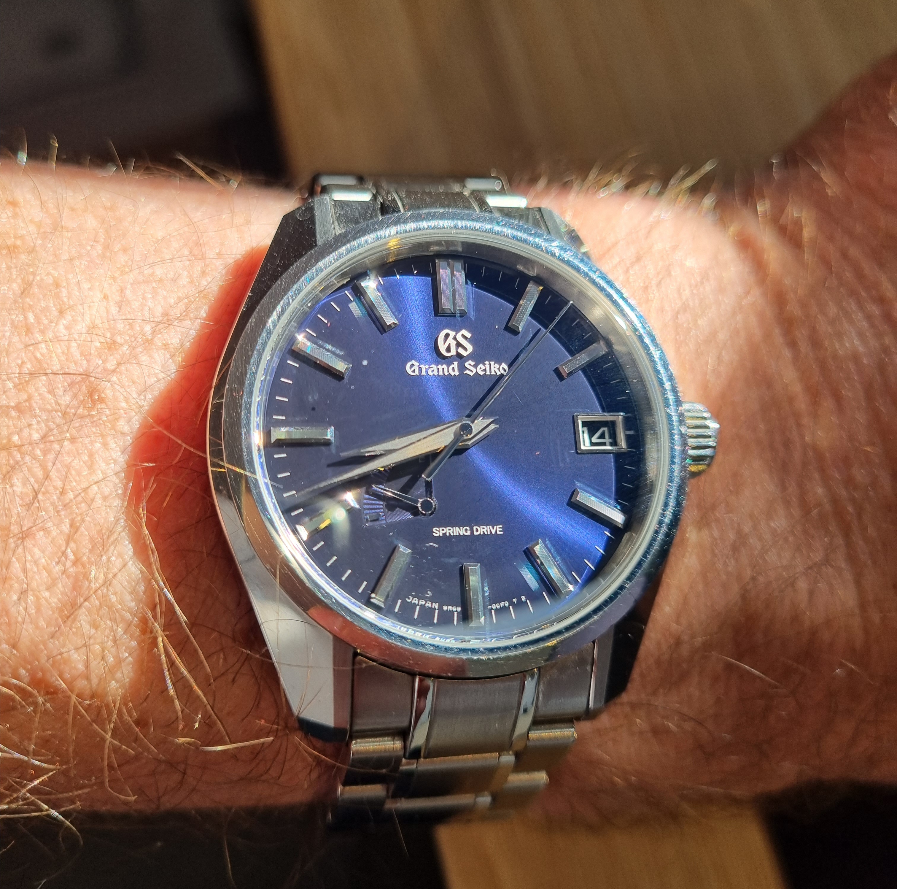 Vandaag de Excelsior Park. Ik blijf het een geweldig horloge vinden, met z’n klassieke kleerhanger 7. De camera heeft moeite met de manier waarop de korrel van de wijzerplaat licht reflecteert. Ik krijg steeds paarse wazen bij macro’s.