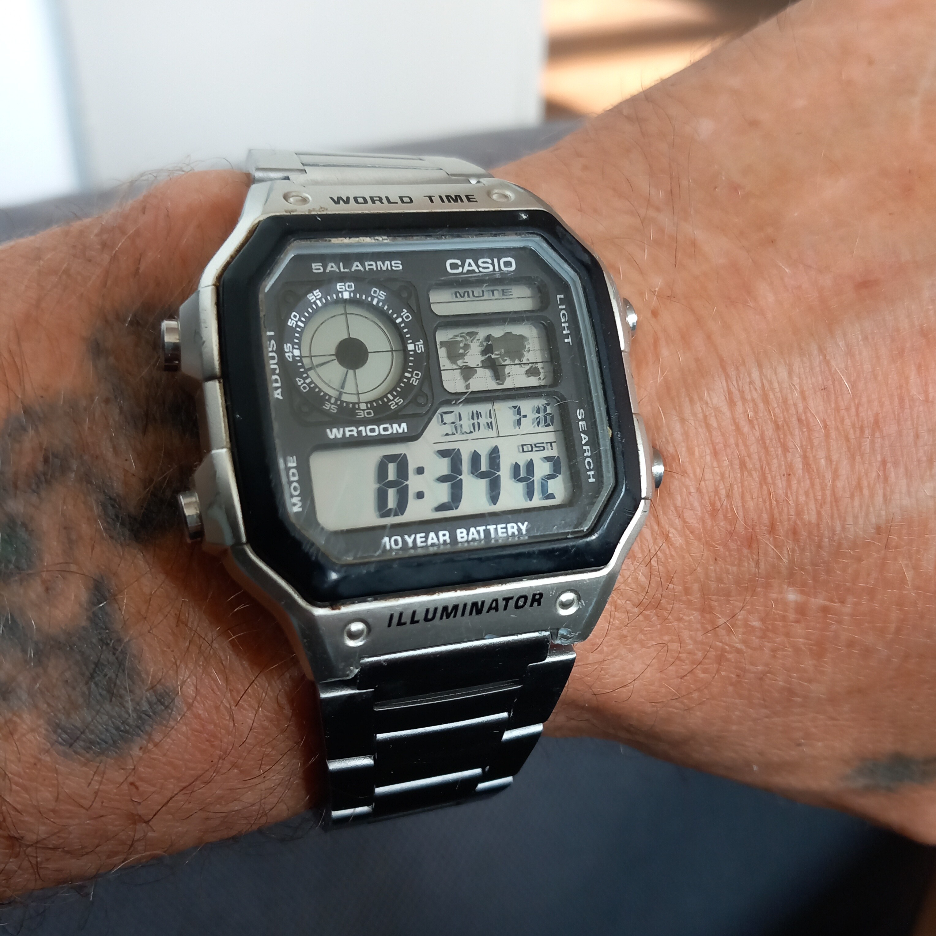 Zelfs de uur en minuten aanduiding lijken in het zand weg te zakken.