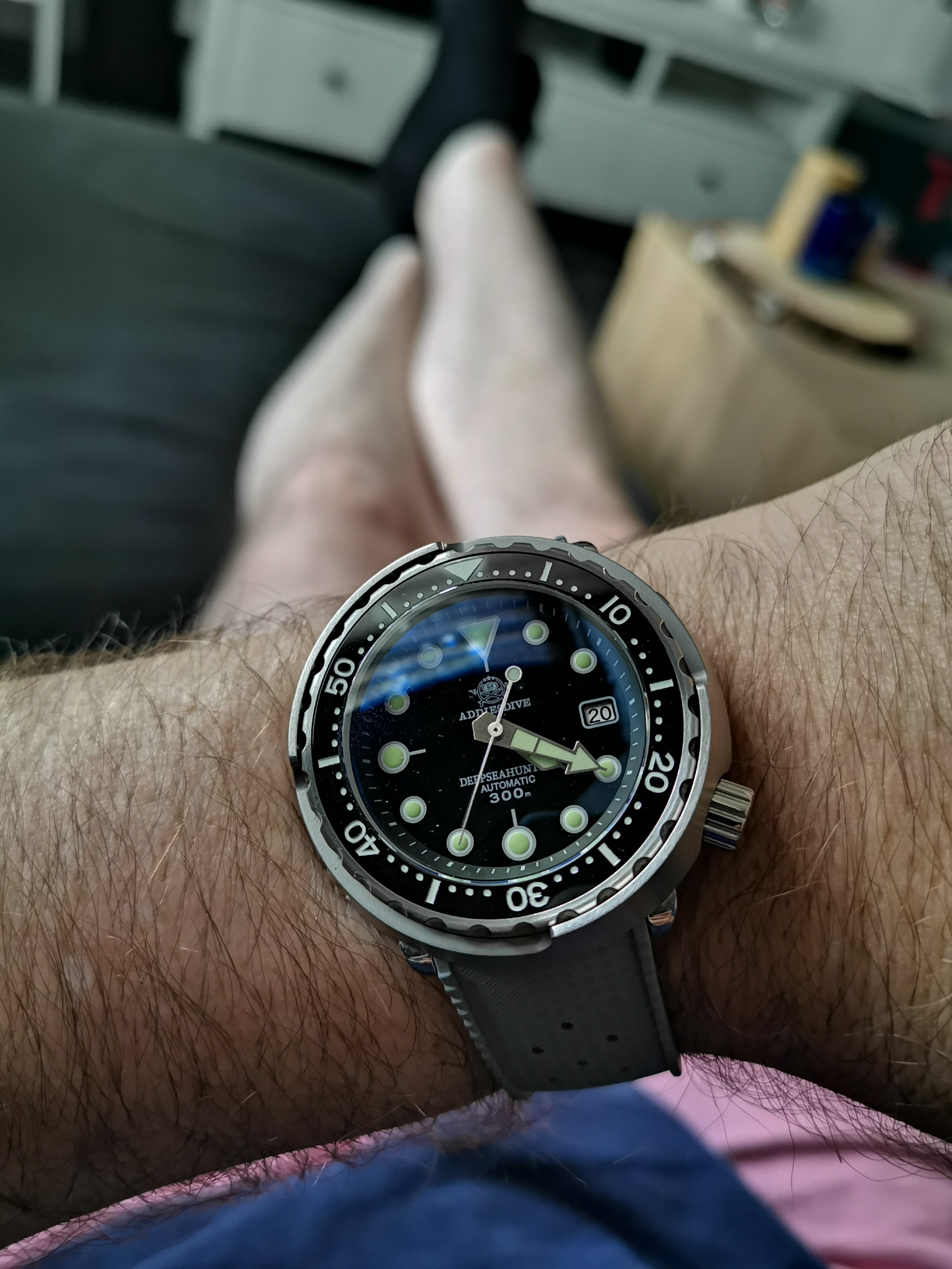Tuna hommage van Addiesdive vandaag. Saffierglas met AR coating, keramische bezel, bizarre lume én alles goed uitgelijnd… Kijken we mee Seiko?