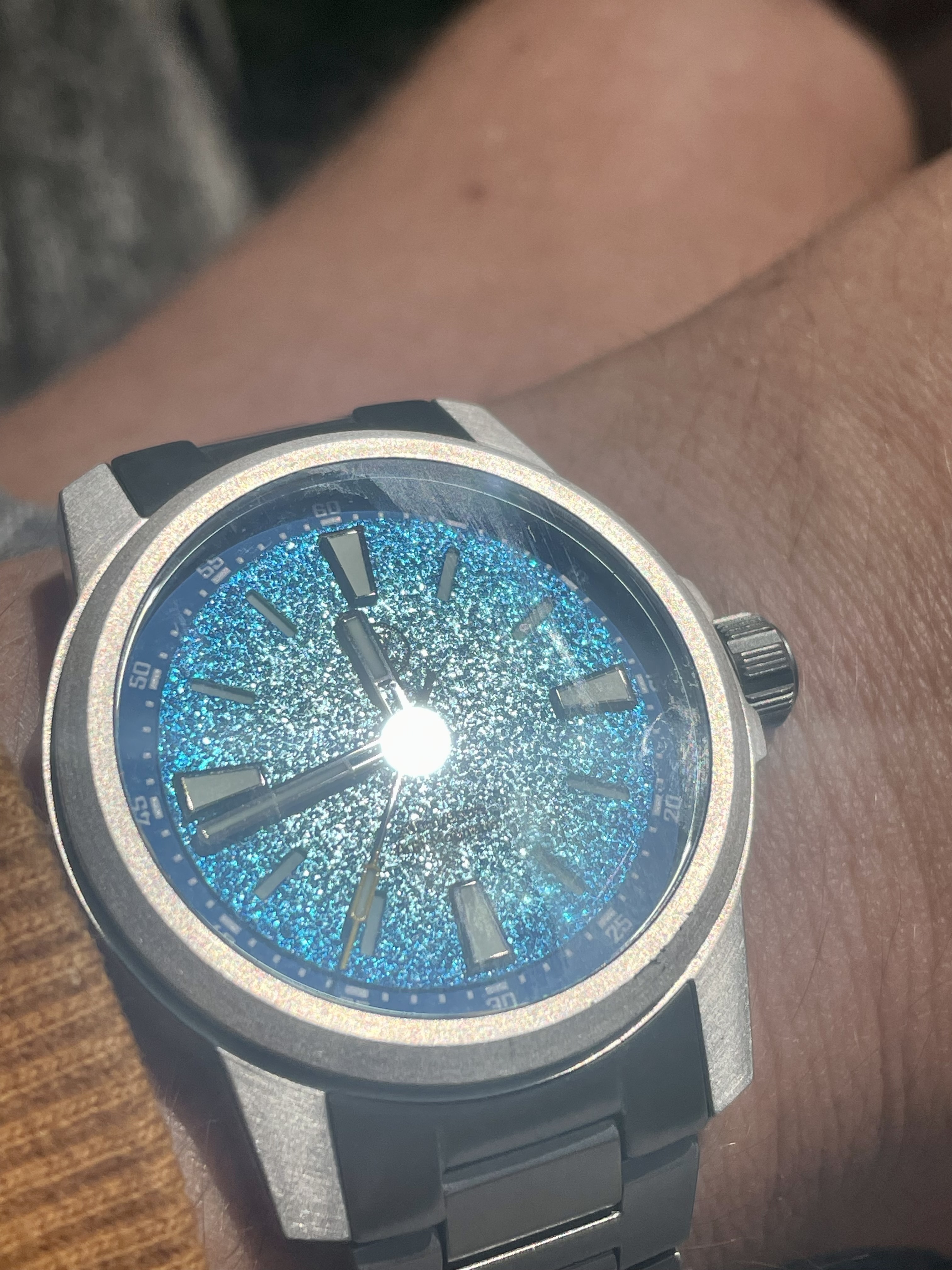 De kast en wijzers shinen weer lekker op een matte achtergrond… de oranje secondewijzer popt er altijd uit