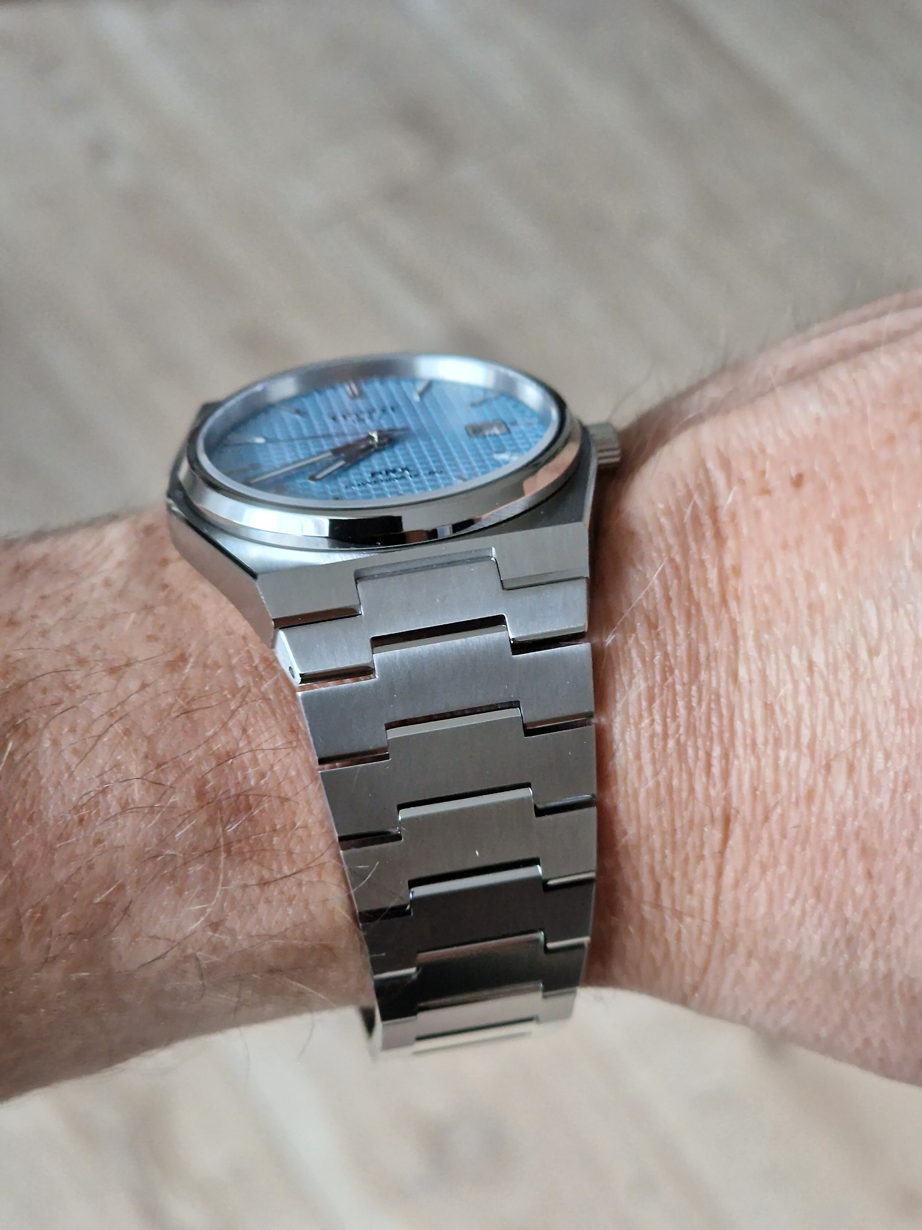 De bracelet is echter niet zo best, dus even lekker op een oude wijnrode nato