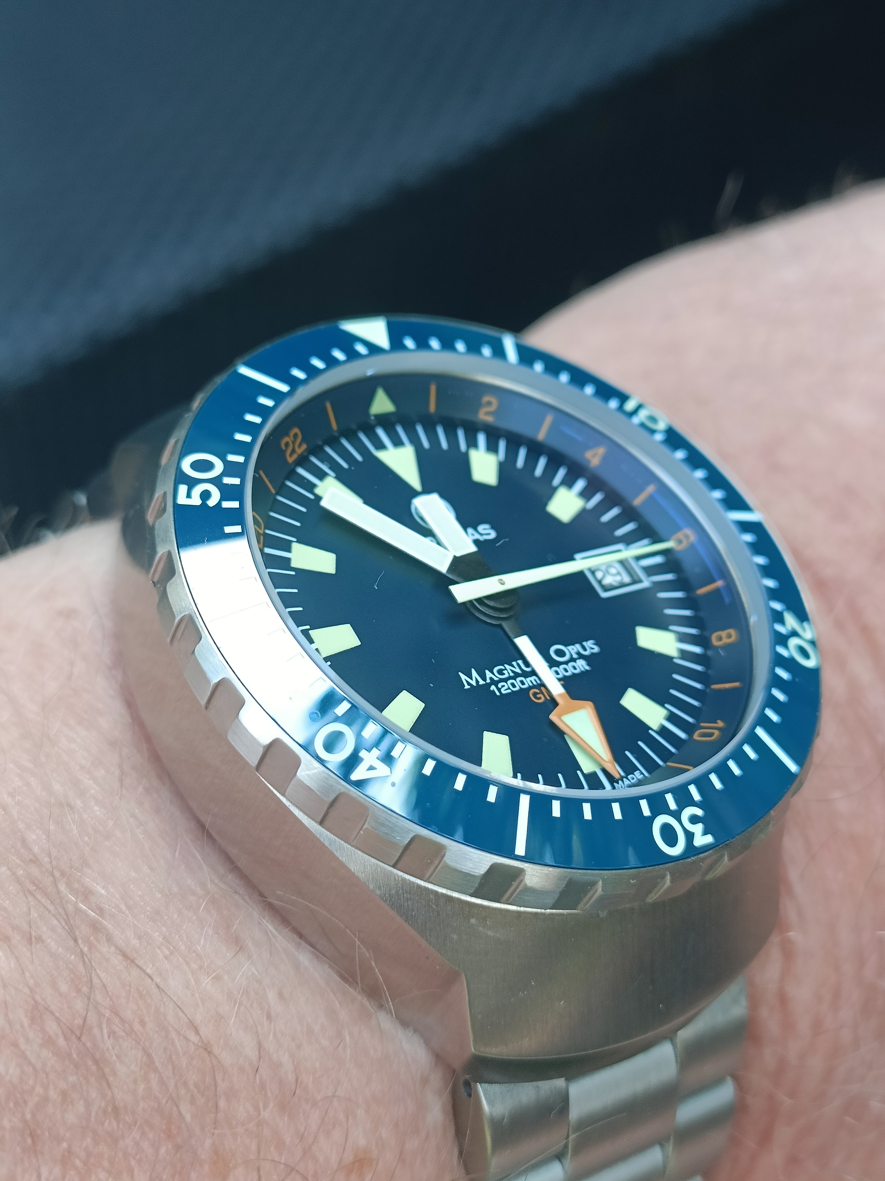Broertje van die van gisteren, gelijke kast, maar met lunette en een geheel ander uurwerk, hoewel ook eco drive. (Ja, oude foto)