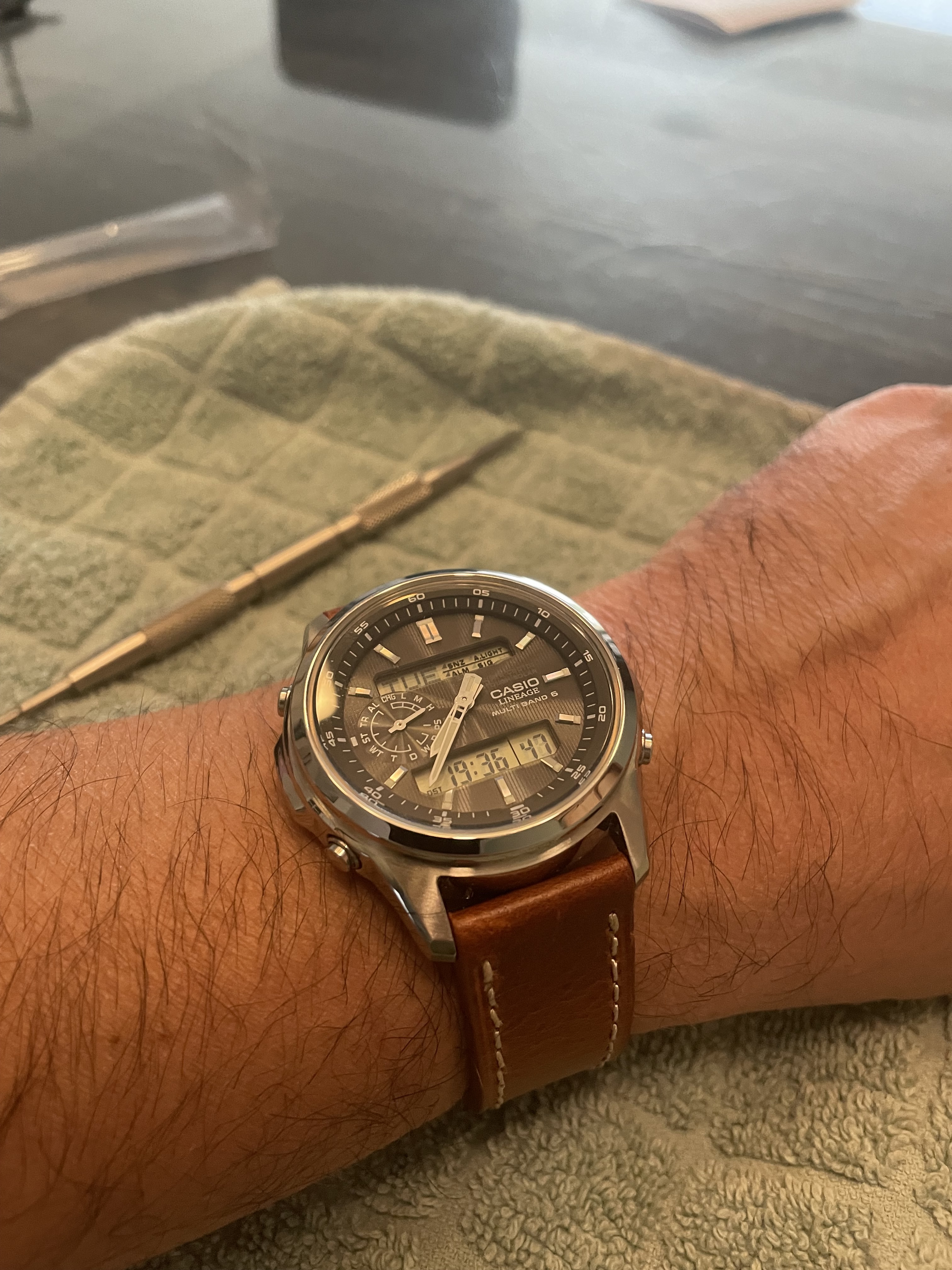 'k Heb bij de aanschaf enige tijd moeten wachten, namelijk rechtstreeks bij Certina in Zwitserland dienen te bestellen. Hier in Leuven, Be nérgens te koop (toch niet met zilverkleurige dial) en 'k wou deze toch even effectief passen.