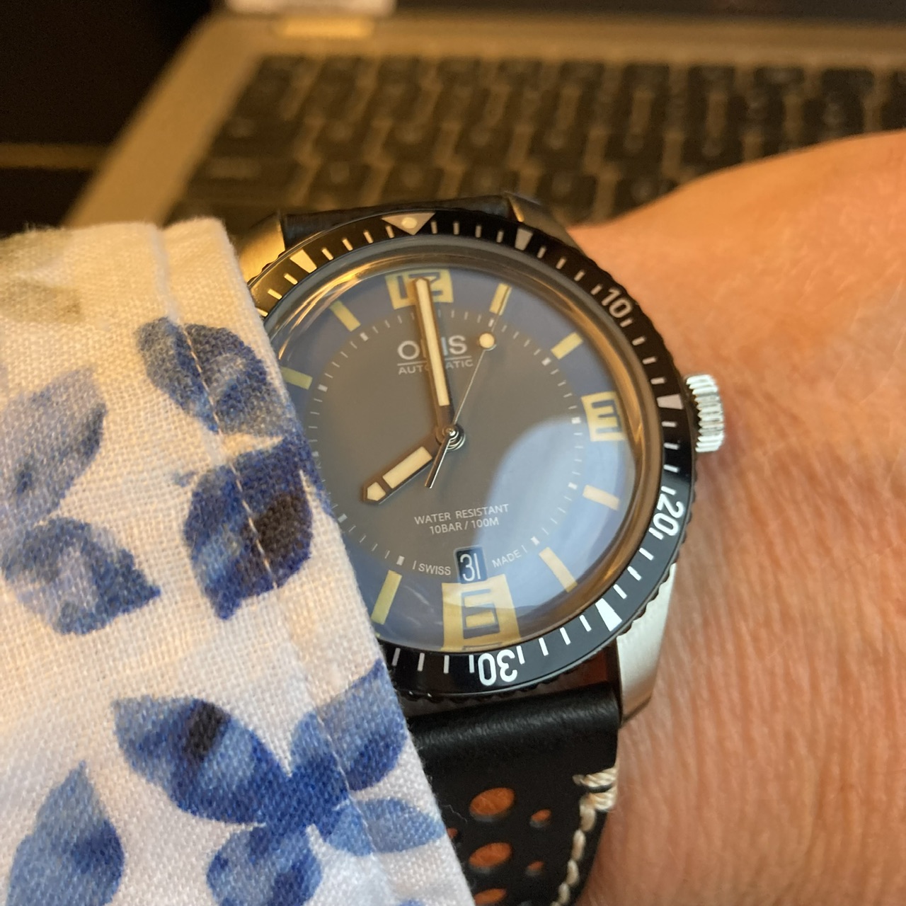 Ik zat net in een ander topic te oreren dat duikhorloges lomp, dik en best wel kut zijn. Vandaag dus de Yema Superman 39 maar eens op een NATO gegooid.