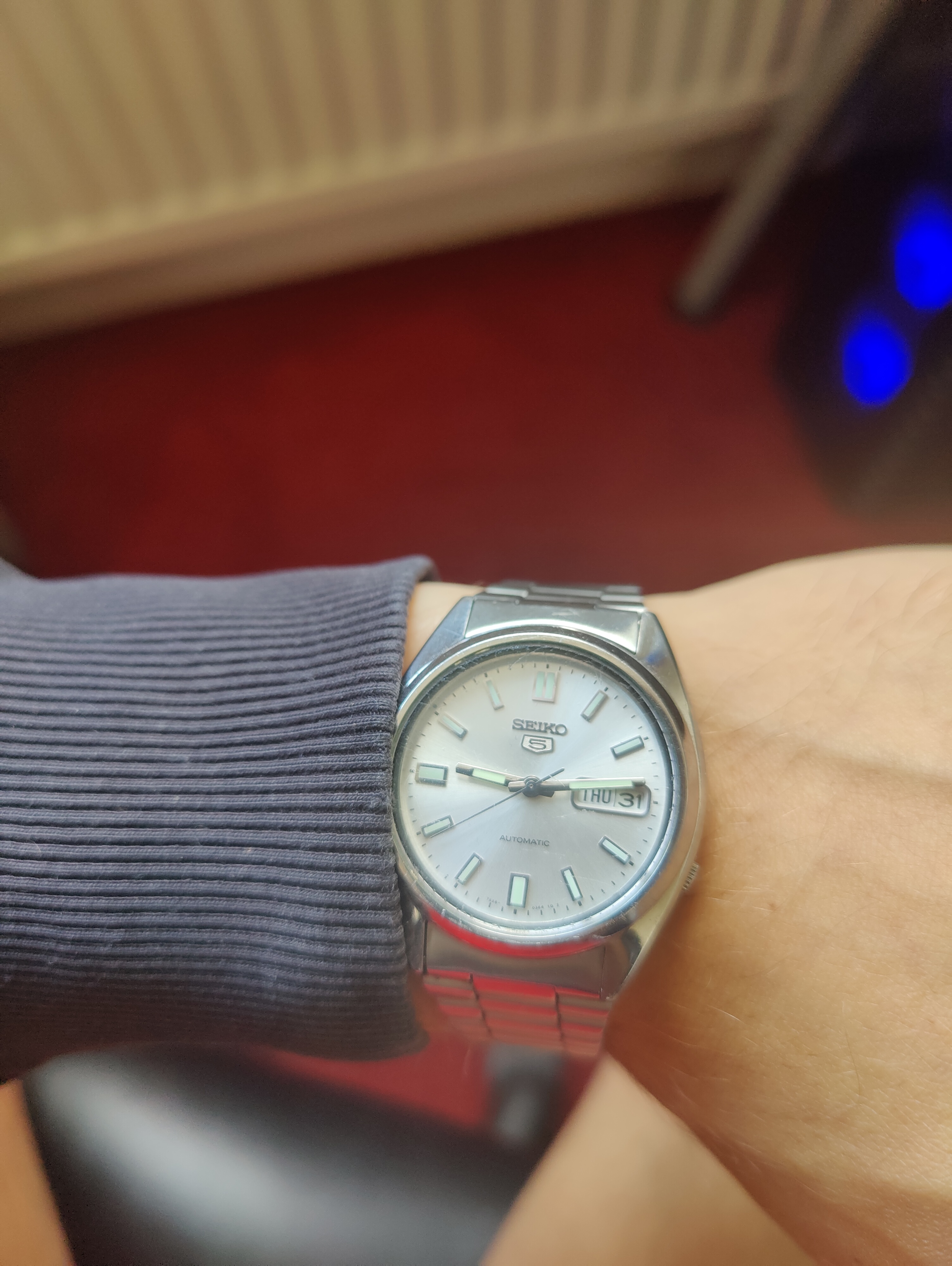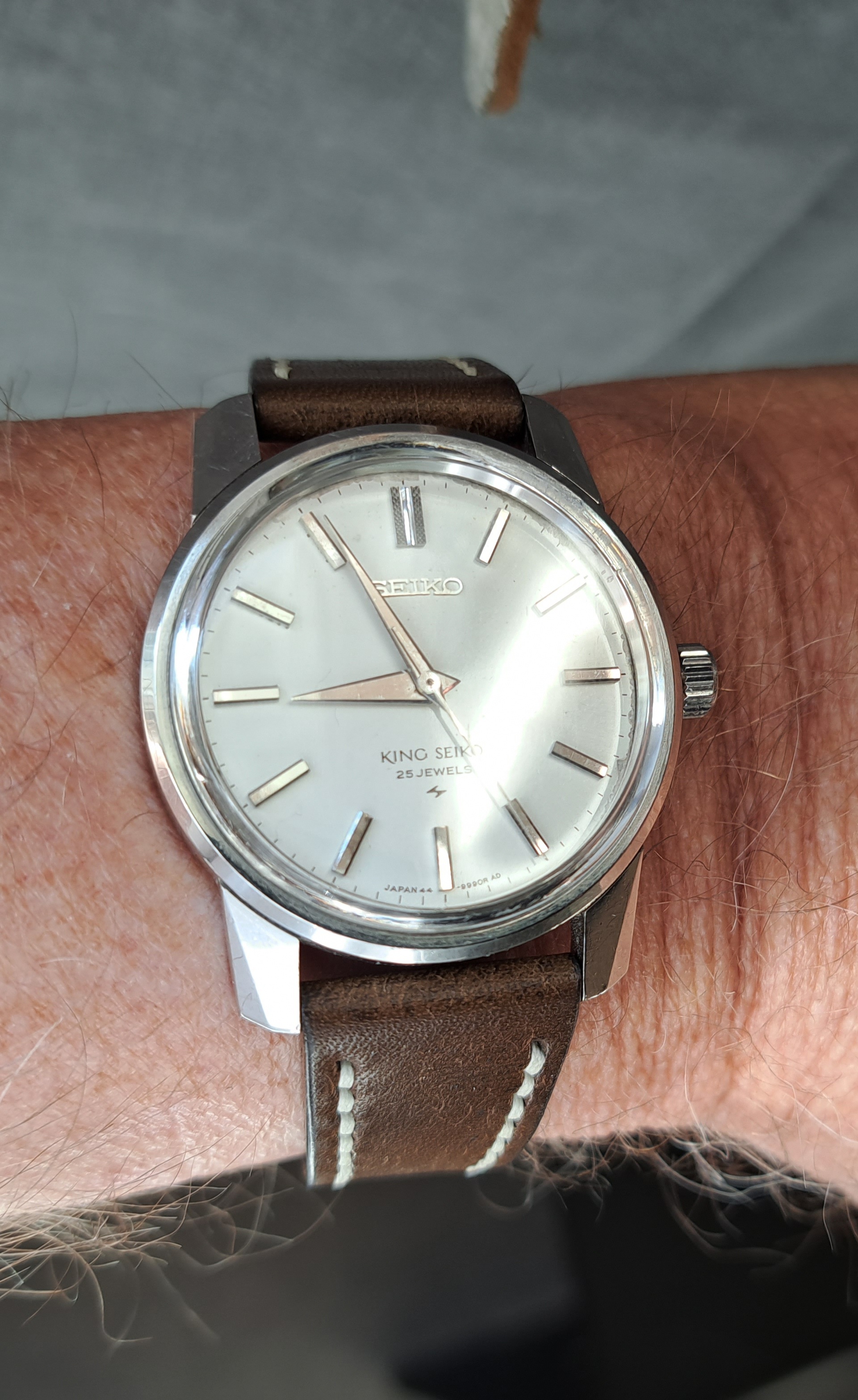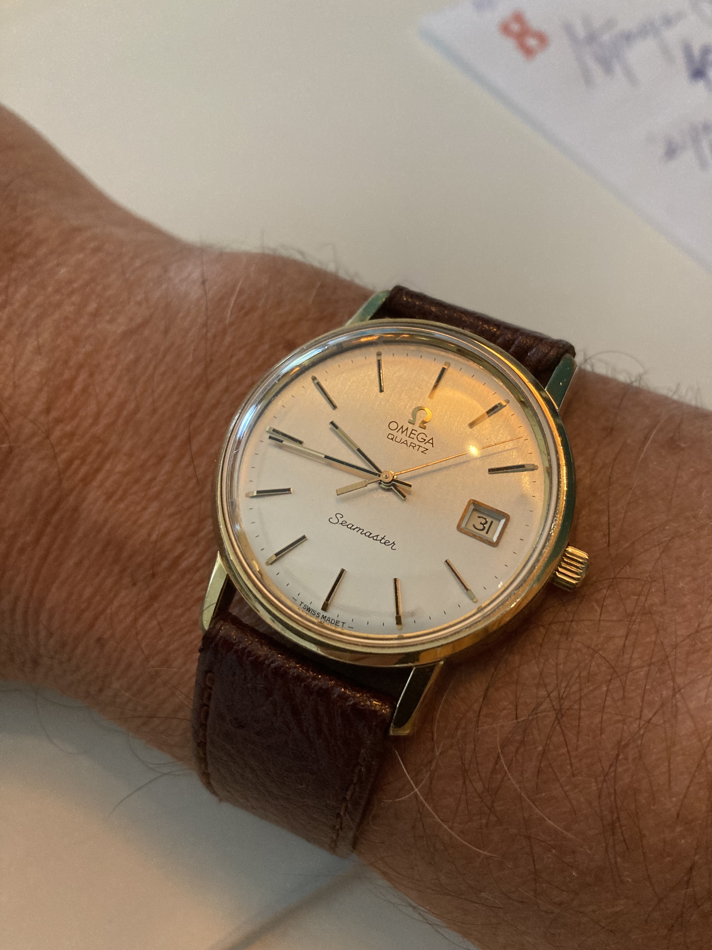 De Raymond Weil van mijn grootvader zaliger. Blijft leuk om geregeld om te doen, en geeft me heel veel zin in een Cartier Tank