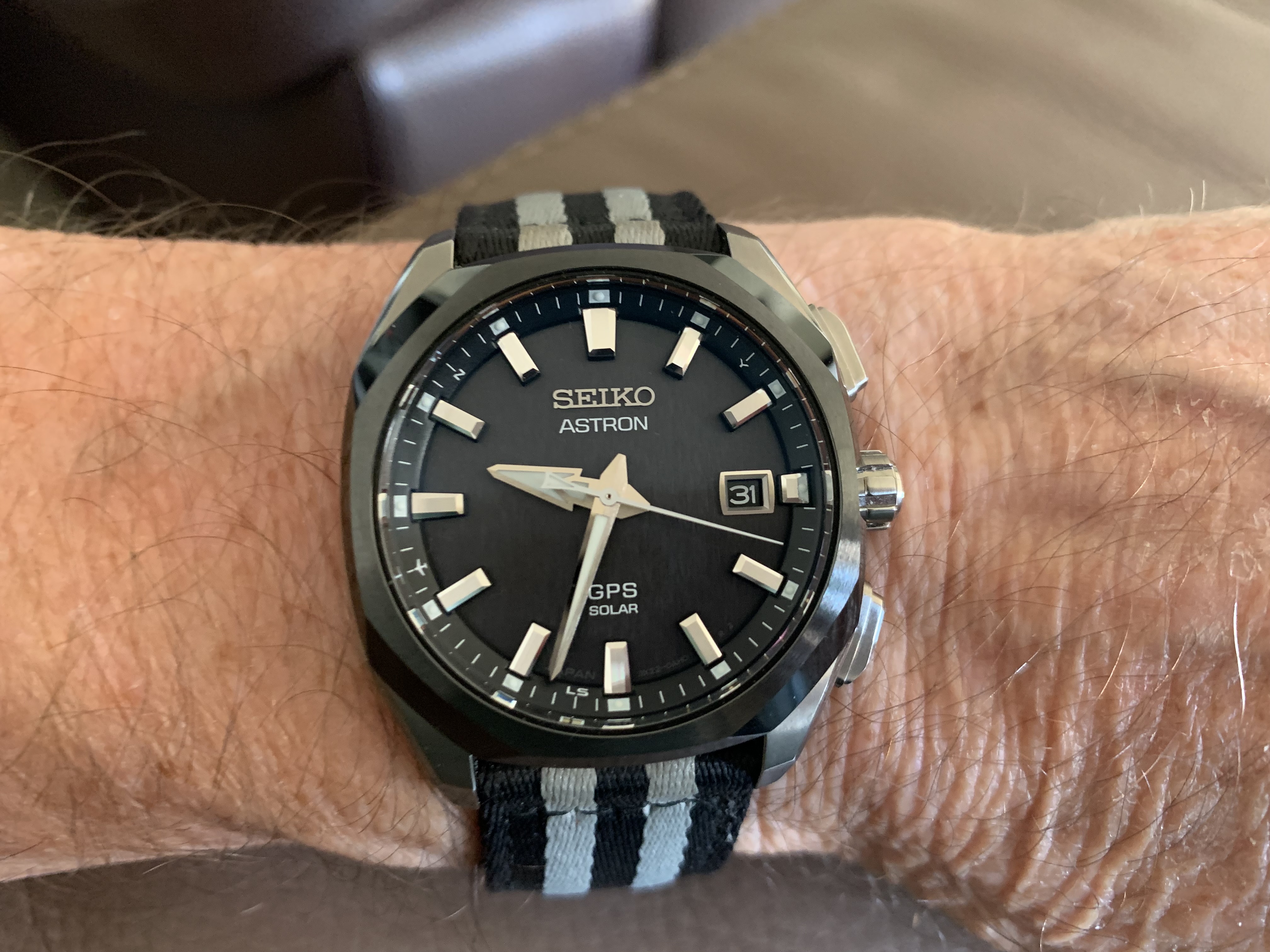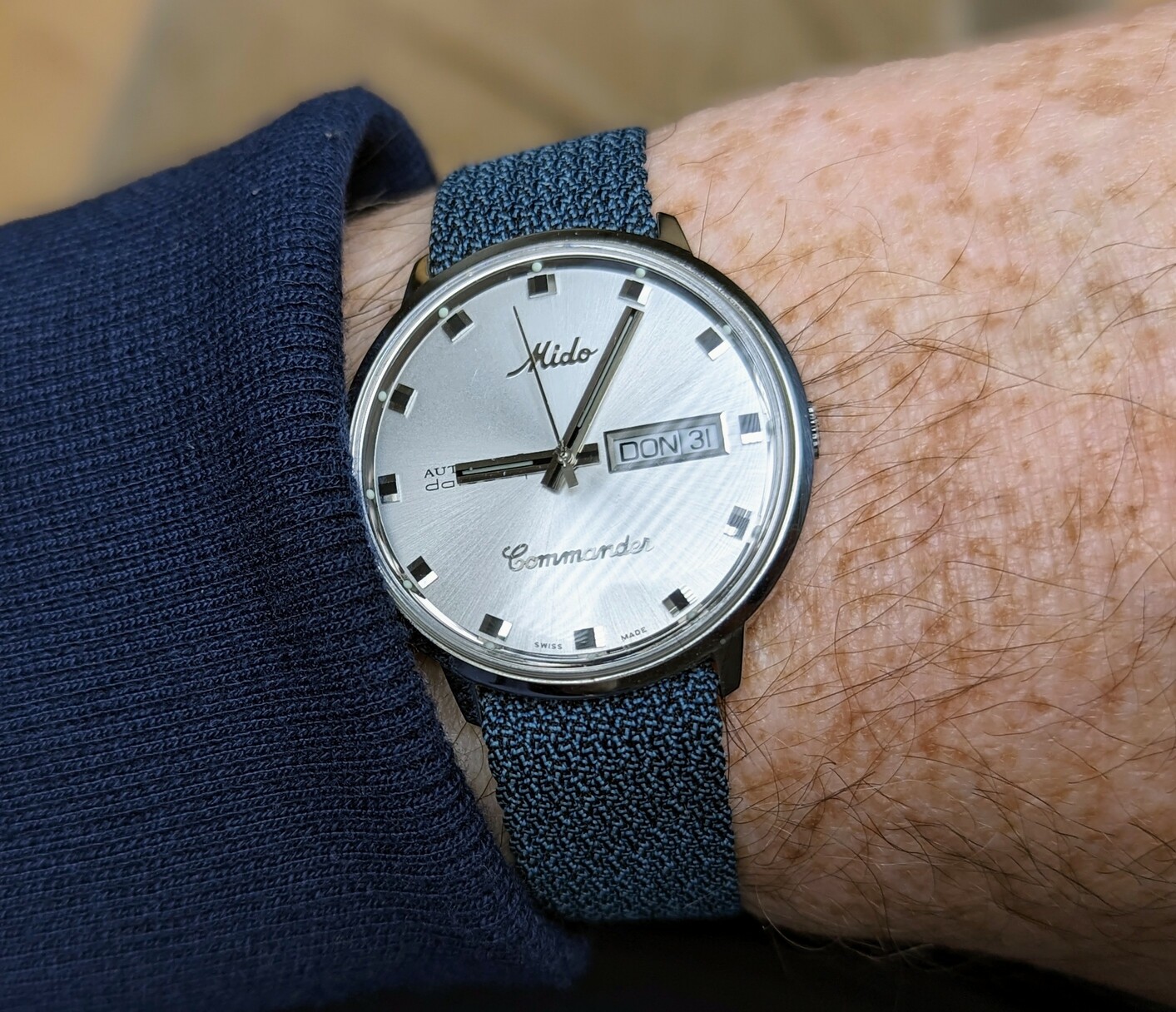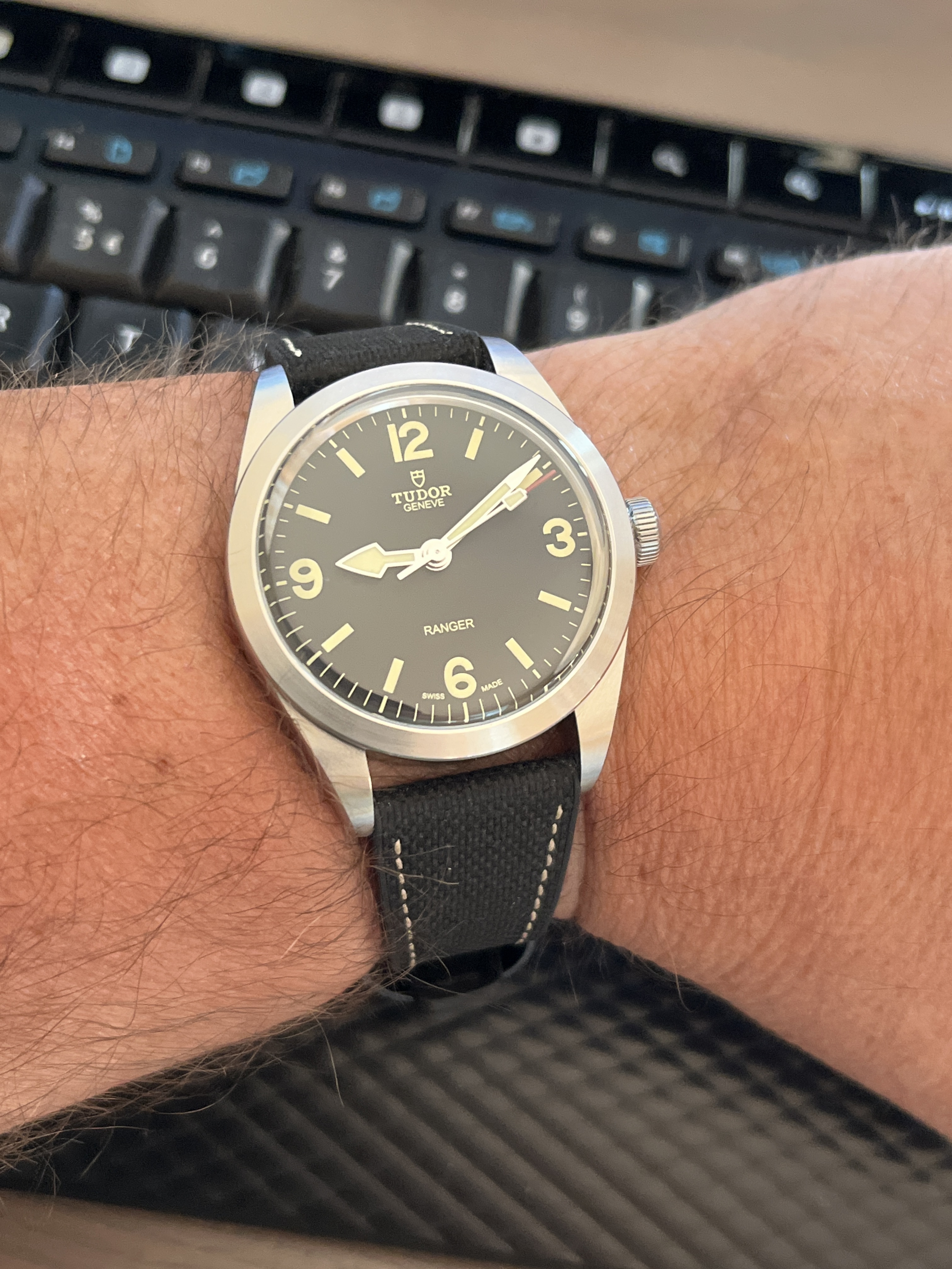 De Raymond Weil van mijn grootvader zaliger. Blijft leuk om geregeld om te doen, en geeft me heel veel zin in een Cartier Tank