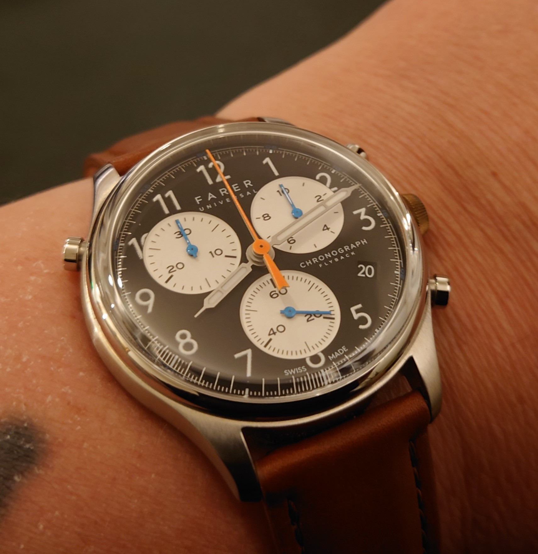 Met een knipoog naar de jaren 60 rally chronografen. Deze heb ik alweer een paar jaar en is mijn tweede Farer. Ik word er altijd vrolijk van.