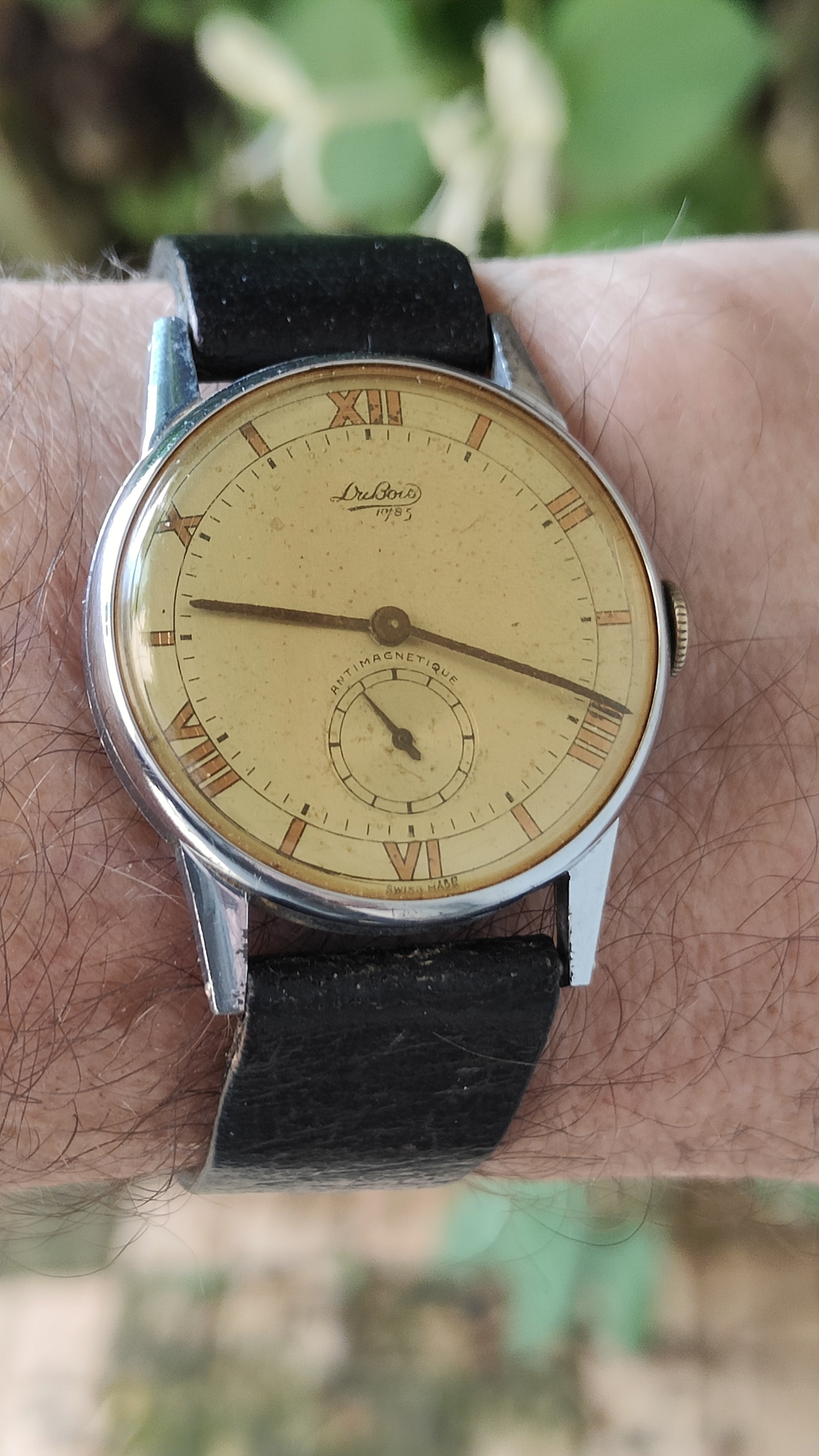 hier in het midden.De Hanhart 39mm flyback om, niet te groot of te dik en scherpe tijdaanduiding. Maken niet voor niets oorspronkelijk stopwatches en precisie instrumenten.