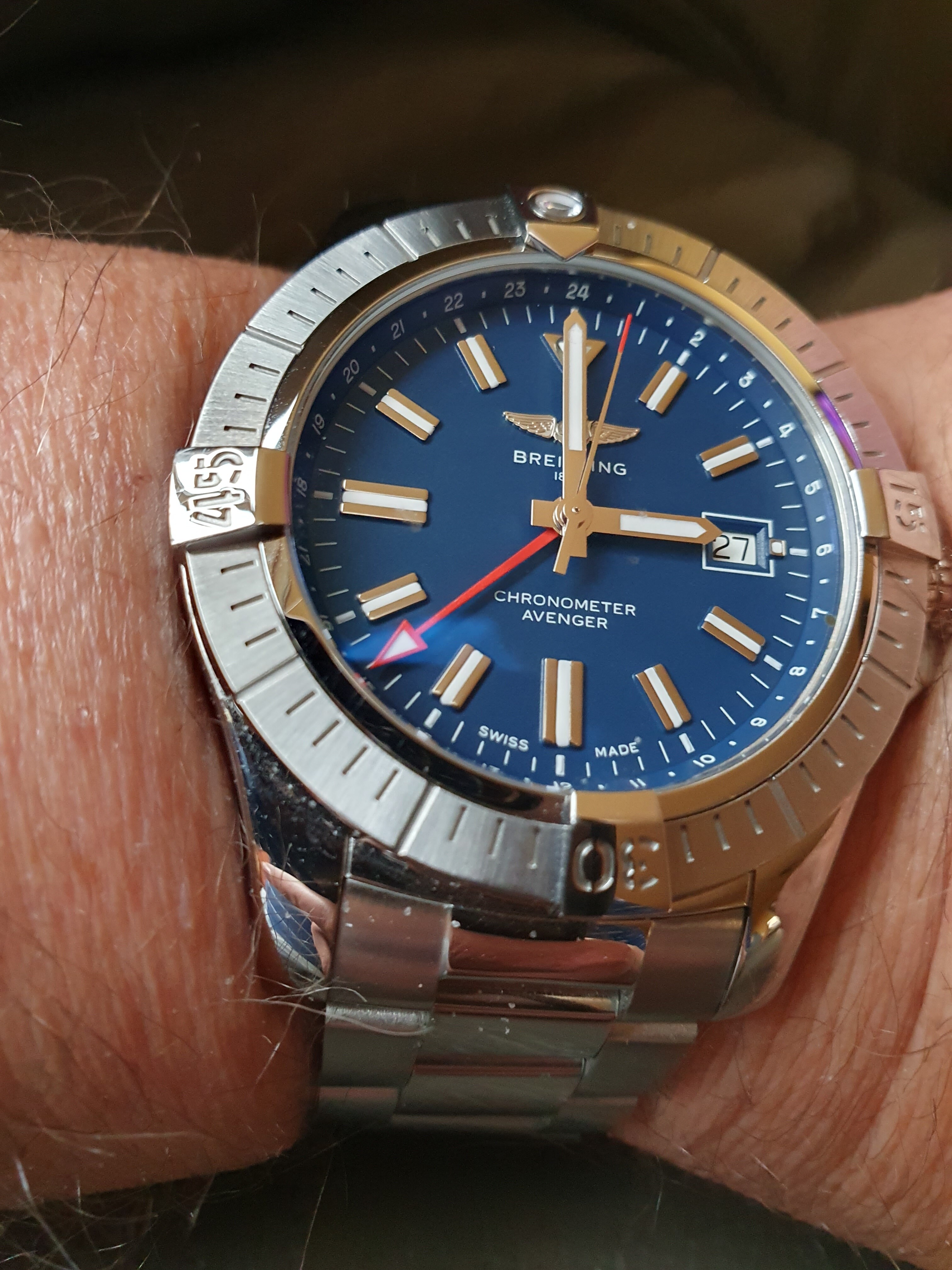 Kersthorloge met fout goud en steentjes opgeborgen en vandaag weer lekker een vette Avenger om de pols