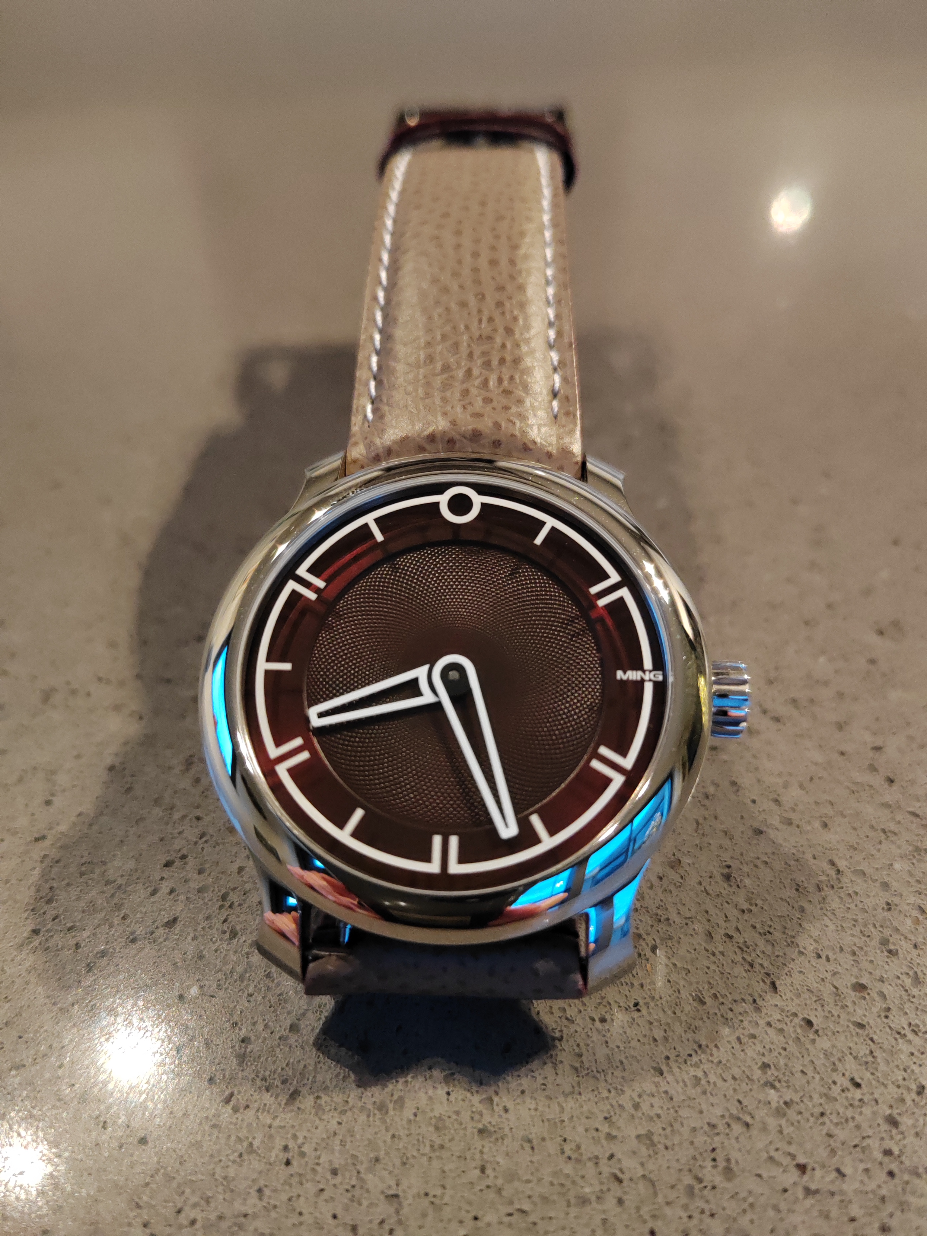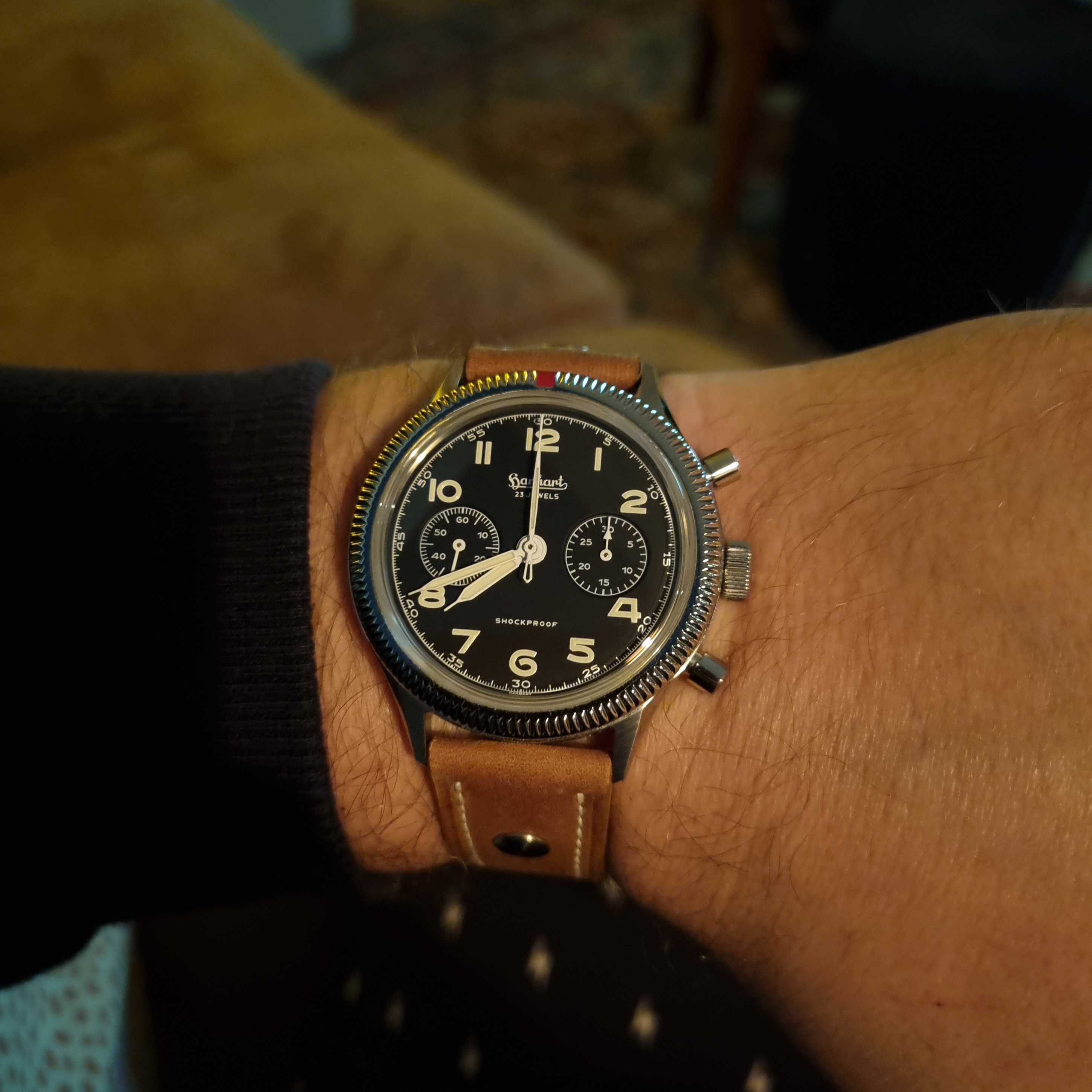 De Hanhart flyback 39mm mee naar het dorpscafé voor de koffie.