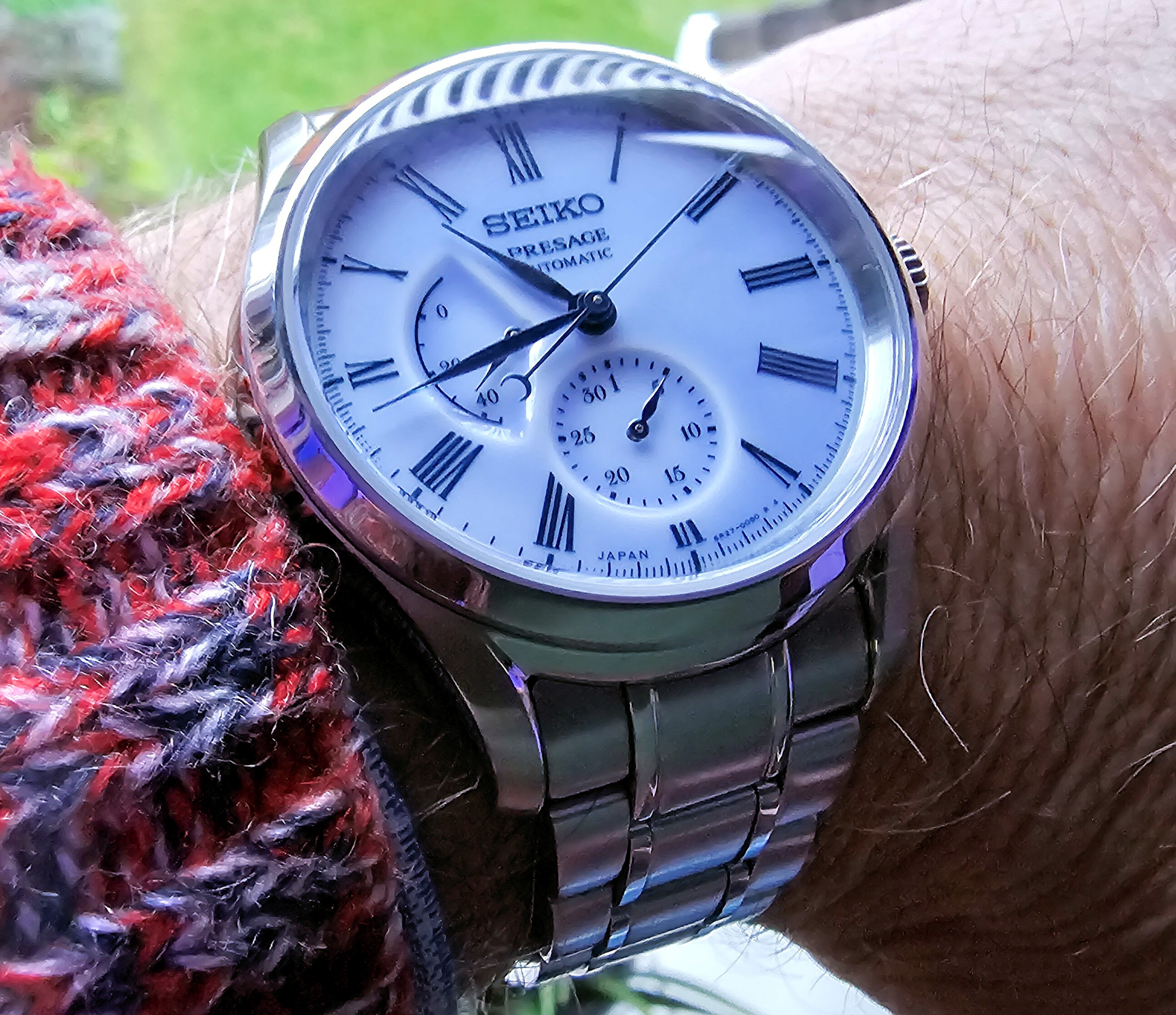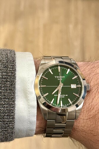 Deze is toch moeilijk van de pols te krijgen. Mooi compact. Bol saffier. Continu wisselend beeld met lichtval op indices en dial. Loopt binnen 1s/dg met Seiko NH35. Niks om over te klagen. Heb ik weer.
