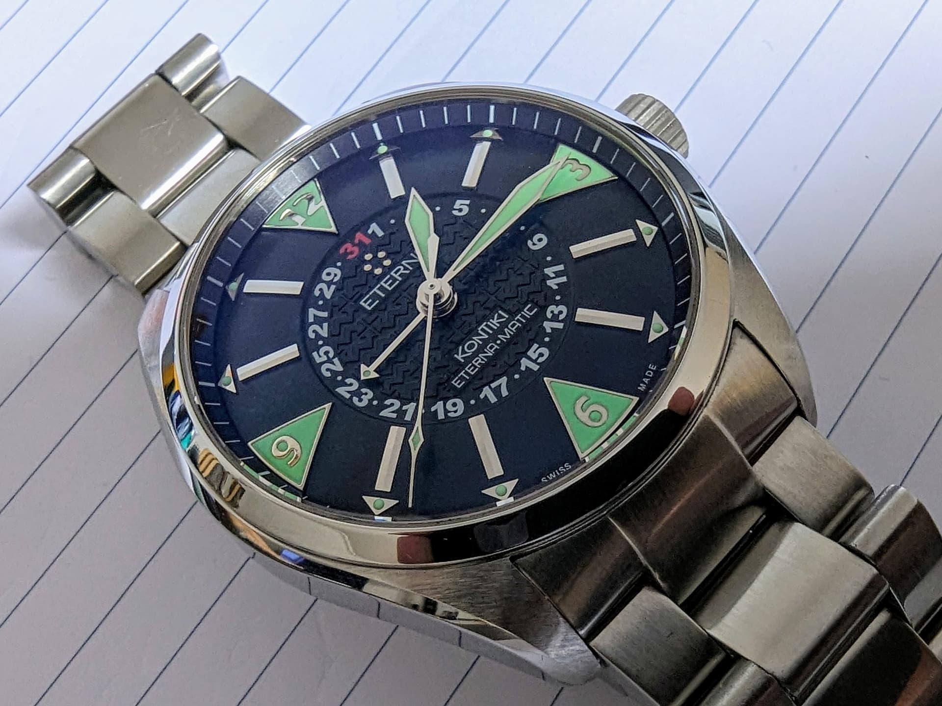 Sinds hij maandag toegekomen is heb ik dit horloge dagelijks aangehad (met het excuus dat het bandje wat moet ingedragen worden). Ik vind 'm gewoon ook erg fijn om dragen en om naar te kijken.