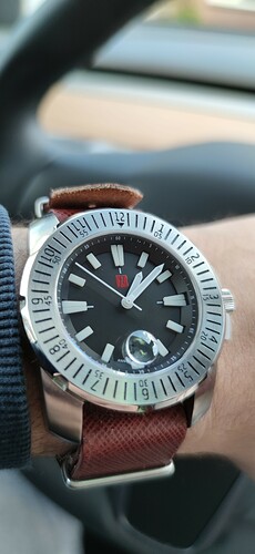Omdat ik vandaag overwegend in de tuin ga werken en morgen op zolder een muurtje ga zetten heb ik de komende twee dagen deze werker om. (Tevens het horloge waar de hele hobby mee begon)