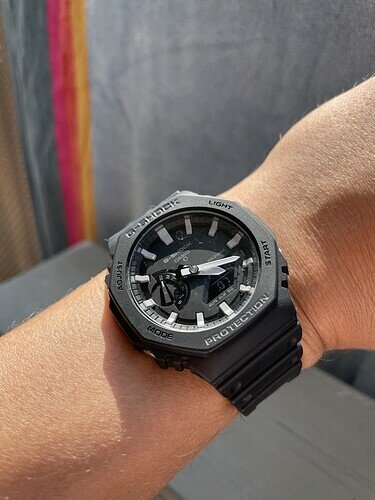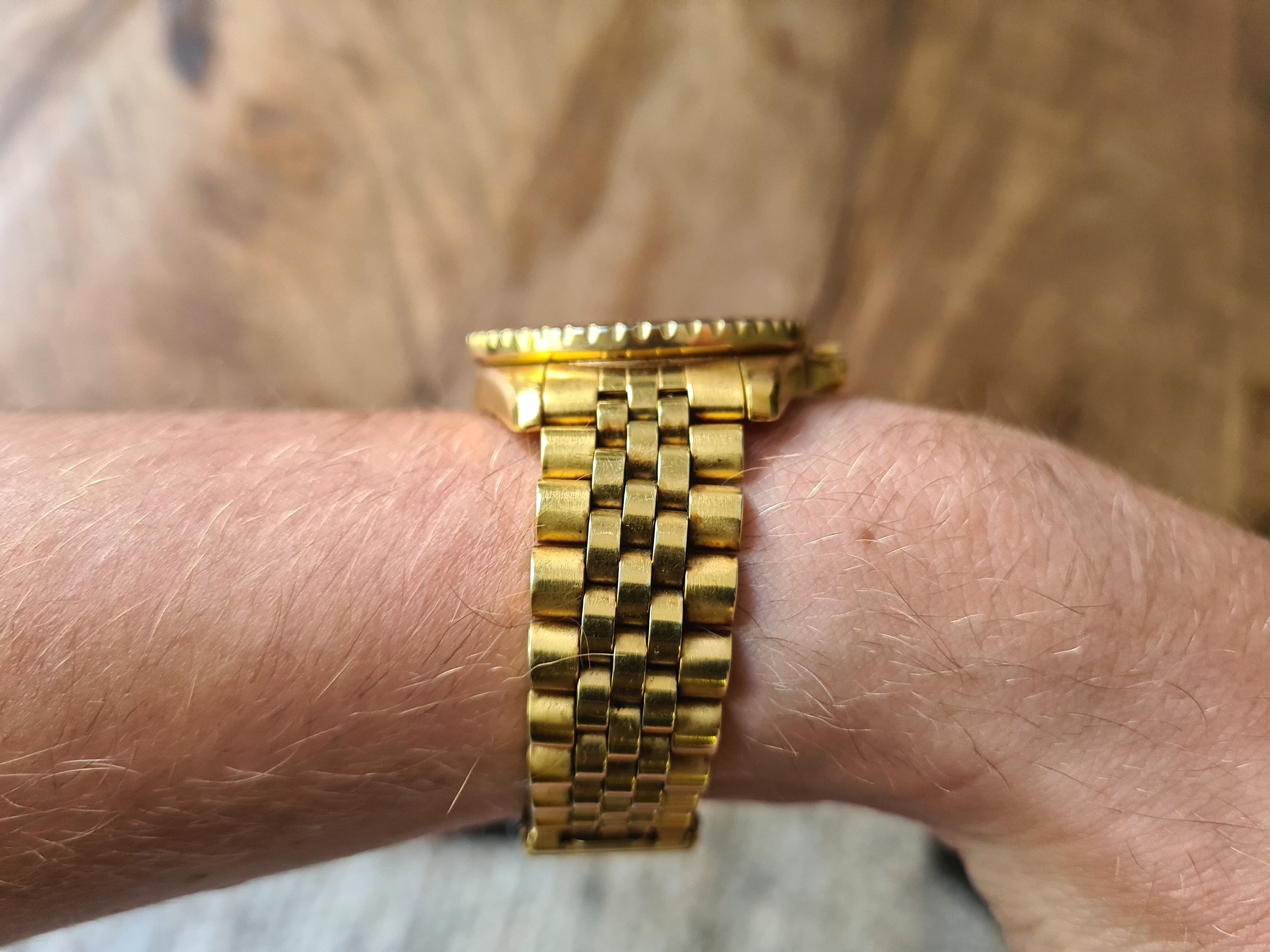 Met zijn 39mm. en soepele tropic een comfortabel horloge .