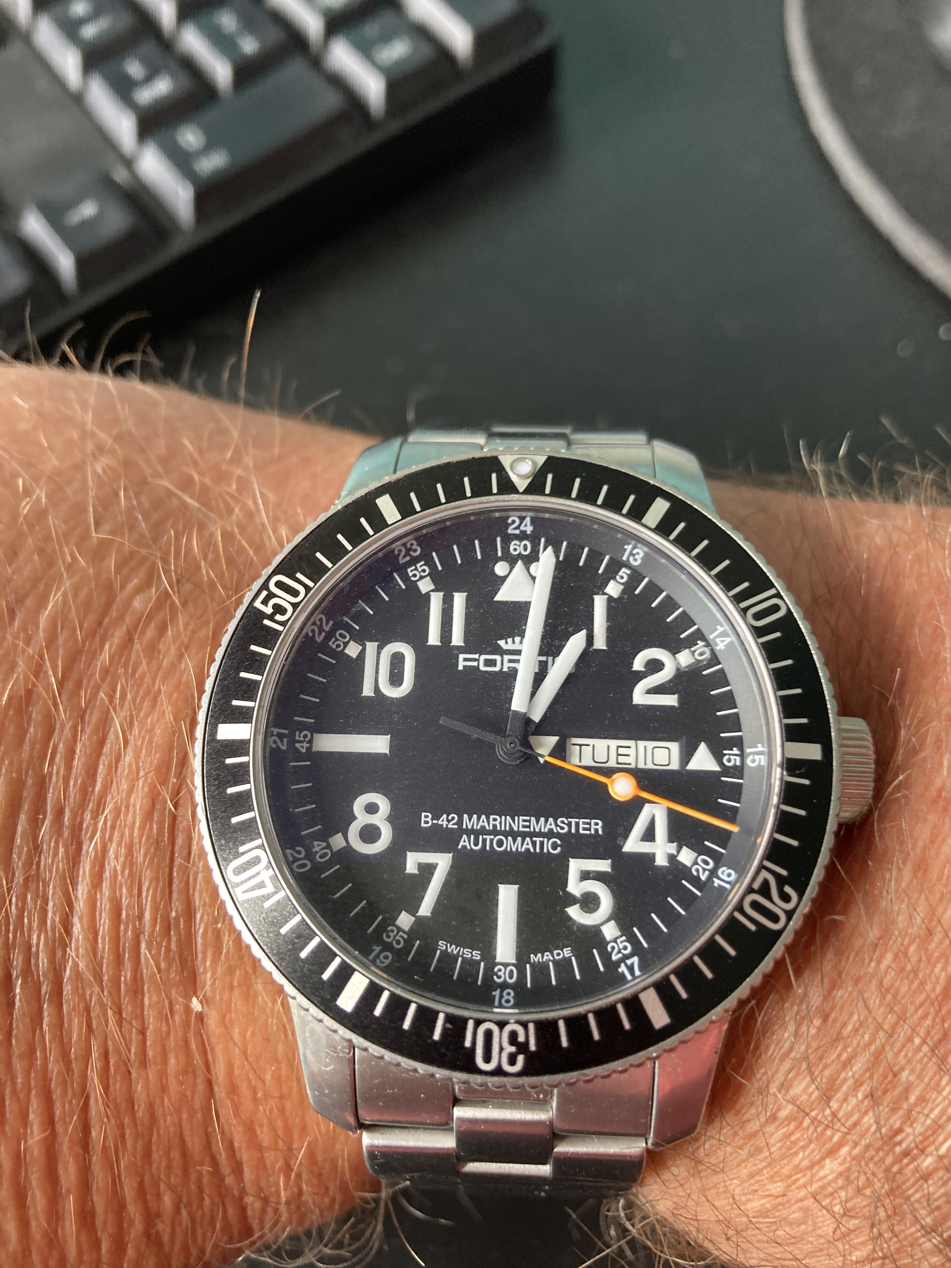 Draagt comfortabel. Vind die schittering in de wijzerplaat prachtig en die grote cijfers fijn.