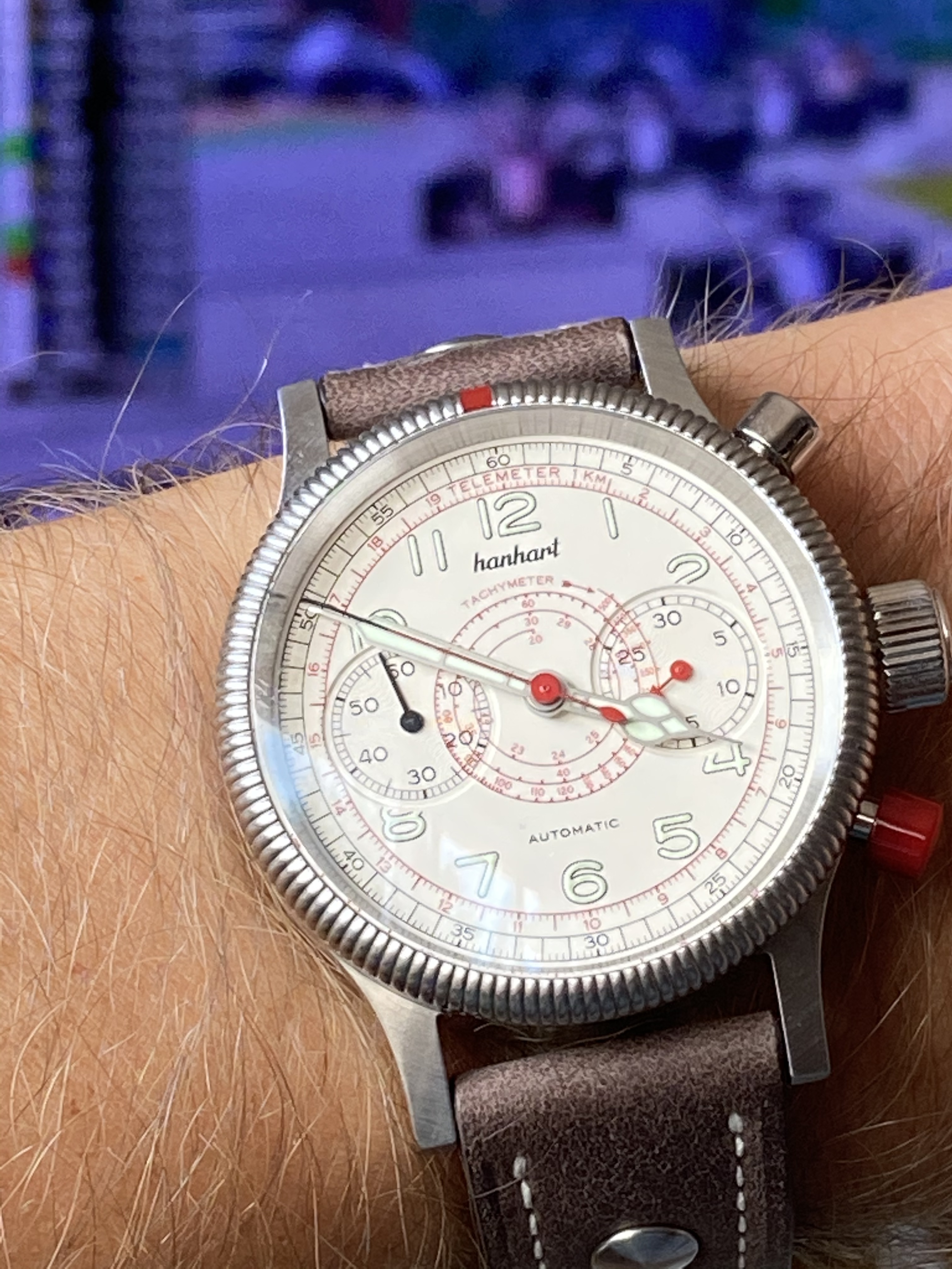 Op papier veel te groot, niet aan beginnen groot, in het echt…(maar dan wel met white metal wijzerplaat) heel mooi, echt onverwacht heel mooi. Vooral met de contrasterende rubberband, pffffff