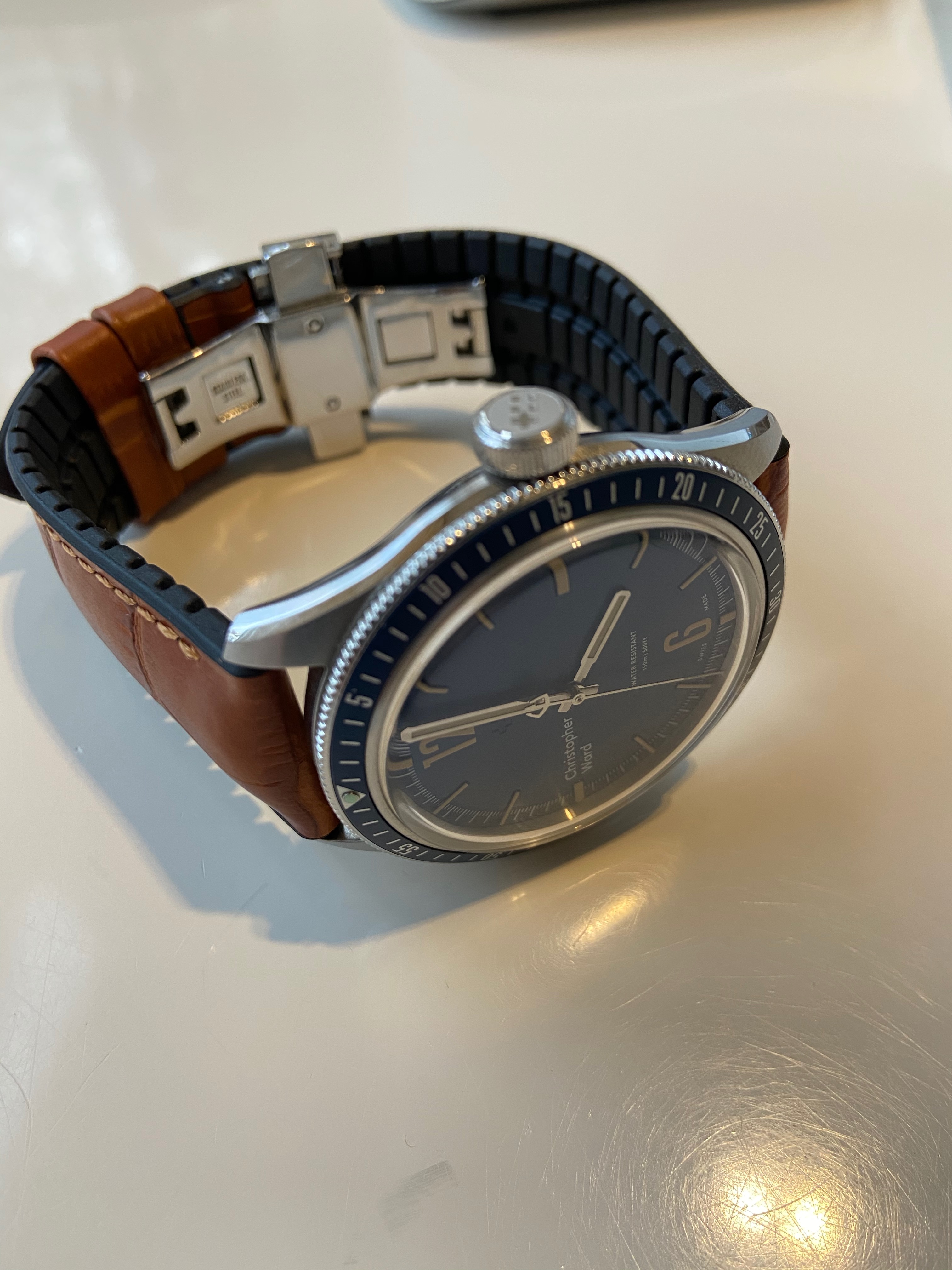 Een variant op mijn NA. Velen vinden leer op een duiker ‘vloeken in de kerk’. Dat moet rubber zijn of staal. Maar wat met een leer/rubber combinatie met 300m water-resistance?