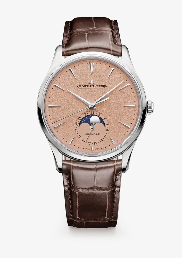 FTFY. Tenminste; dat is hoe JLC de kleur zelf omschrijft. Toen ik hem voor het eerst zag vond ik hem erg fijn. In tweede instantie twijfel ik een beetje over de textuur. Ik vermoed dat deze wat snel gaat afschrijven ten opzichte van de andere wijzerplaten. En dan wordt hij 2dehands weer populair denk ik, als wat sportievere variant voor rond de zeg 7.5k NOS. Hij is er ook als MUT date trouwens, voor slechts 10k.
