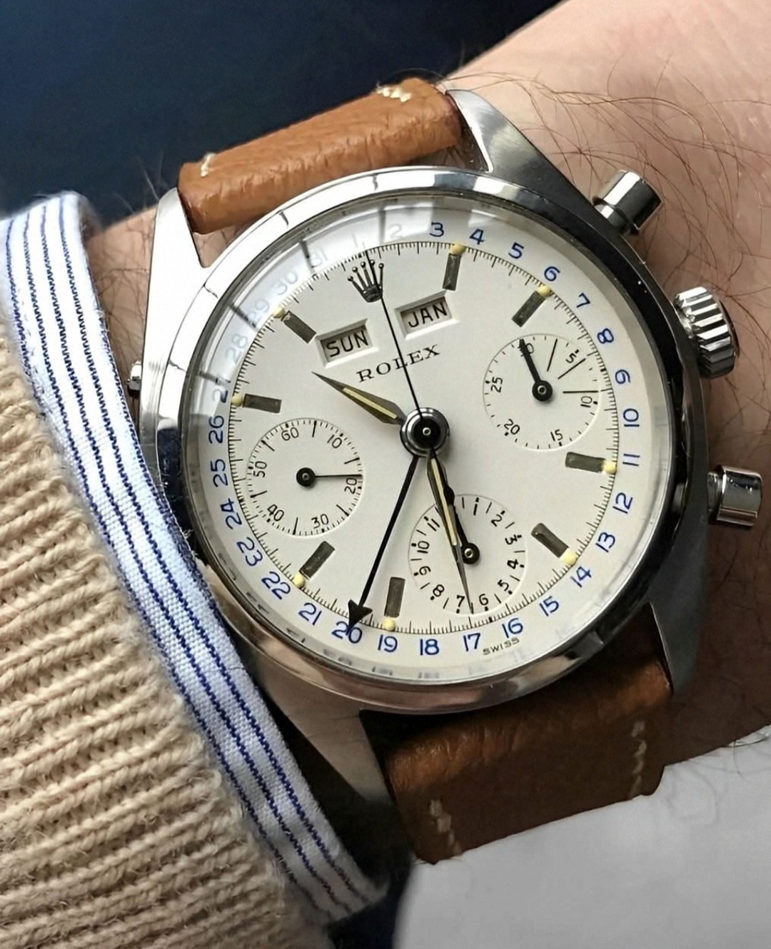 Die begrijp ik… ik denk weleens: een horloge verkopen, dan flink geld erbij en kopen dat ding. Fantastisch horloge! Dan een oyster perpetual med blue erbij en mijn GS45 die een heel andere kast heeft… Dan heb ik een daily, semi casual/dress en deze uber dresswatch.