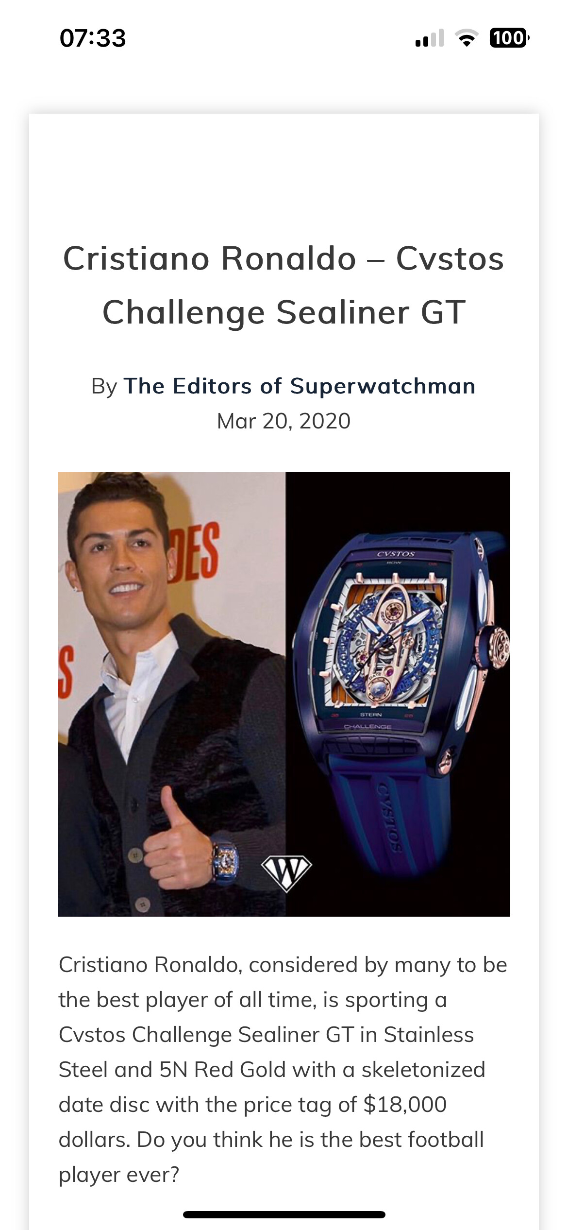 Ook niet echt my cup of tea en ik heb me ook niet ingelezen in t merk Cvstos. Wel al vaker in Duitsland in de etalage zien liggen. Wat een prijzen. En er zit voor mij persoonlijk echt niks moois bij. Krijg er RM/Hublot vibes van. Waarom is dit merk nu zo duur?