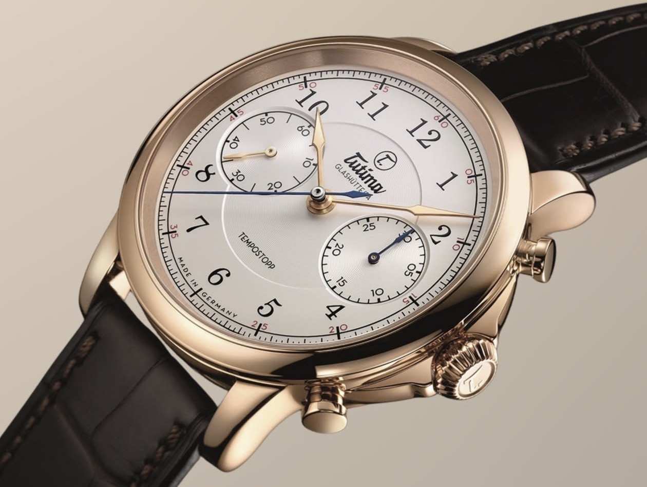 een echte flyback chronograaf met kolomwiel, met een handopwindbaar uurwerk. Het telt slechts tot één minuut verstreken tijd,
