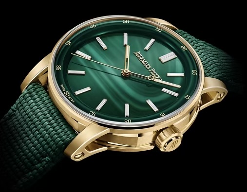 Geelgoud met een malachiet wijzerplaat, geweldig in balans zonder datum ![]()