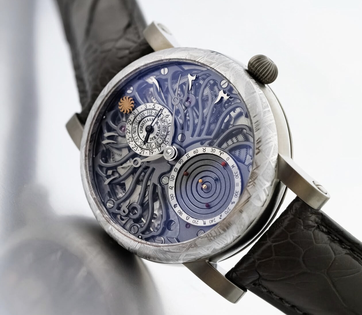 Zo mooi vind ik specifiek het uurwerk overigens niet. Het is een modulaire chronograaf die ze bovenop hun time-only module zetten. Dus dat zou voor mij echt één dagje dragen worden en nooit kopen, want ik heb eigenlijk een uitgesproken hekel aan modulaire chronografen.