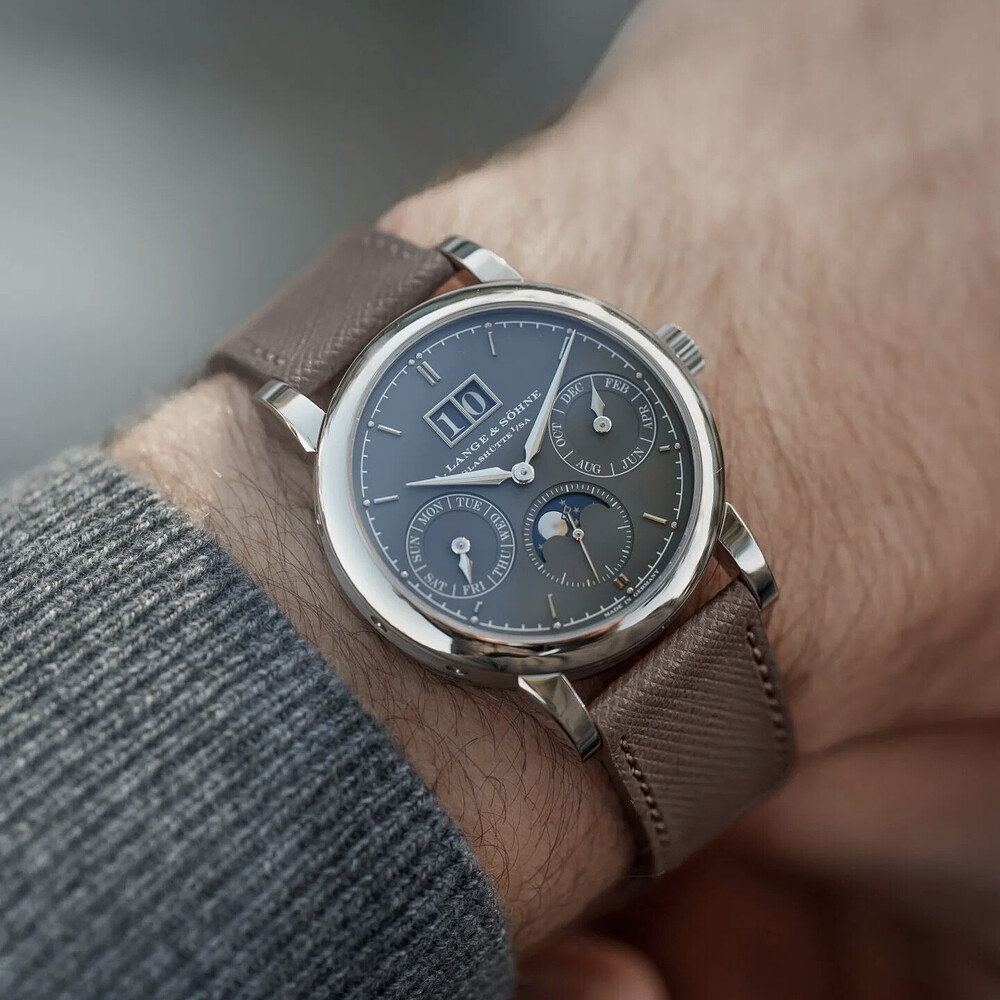 41mm, maar schijnt wat kleiner te dragen, omdat ie dun is en een korte l2l heeft: