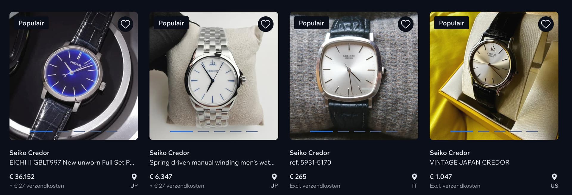 In de grotere steden zijn heel veel 2e hands winkels, waar je ook Credor tegen kunt komen. Een veel voorkomende (vreemde) formule is winkels waar op de begane grond luxe tassen en aanverwanten worden verkocht, maar op de 1e verdieping 2e hands horloges. Daar kun je dan tegen ieder willekeurig horlogemerk aanlopen…