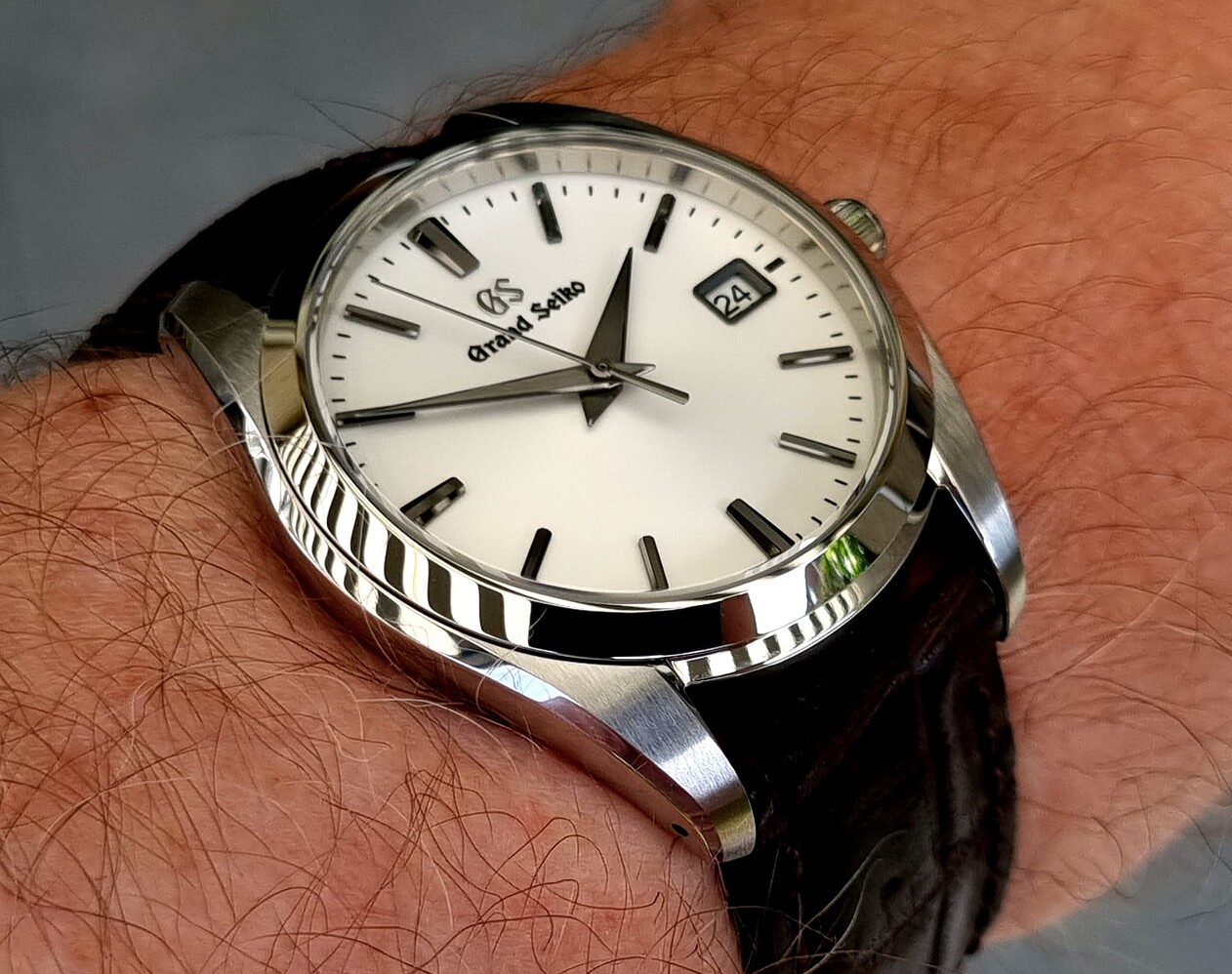 Direct jammer: De zalmroze wijzerplaat met stick indices is er alleen in 30mm. Net weer niet in 36. Dat is een gemiste kans.