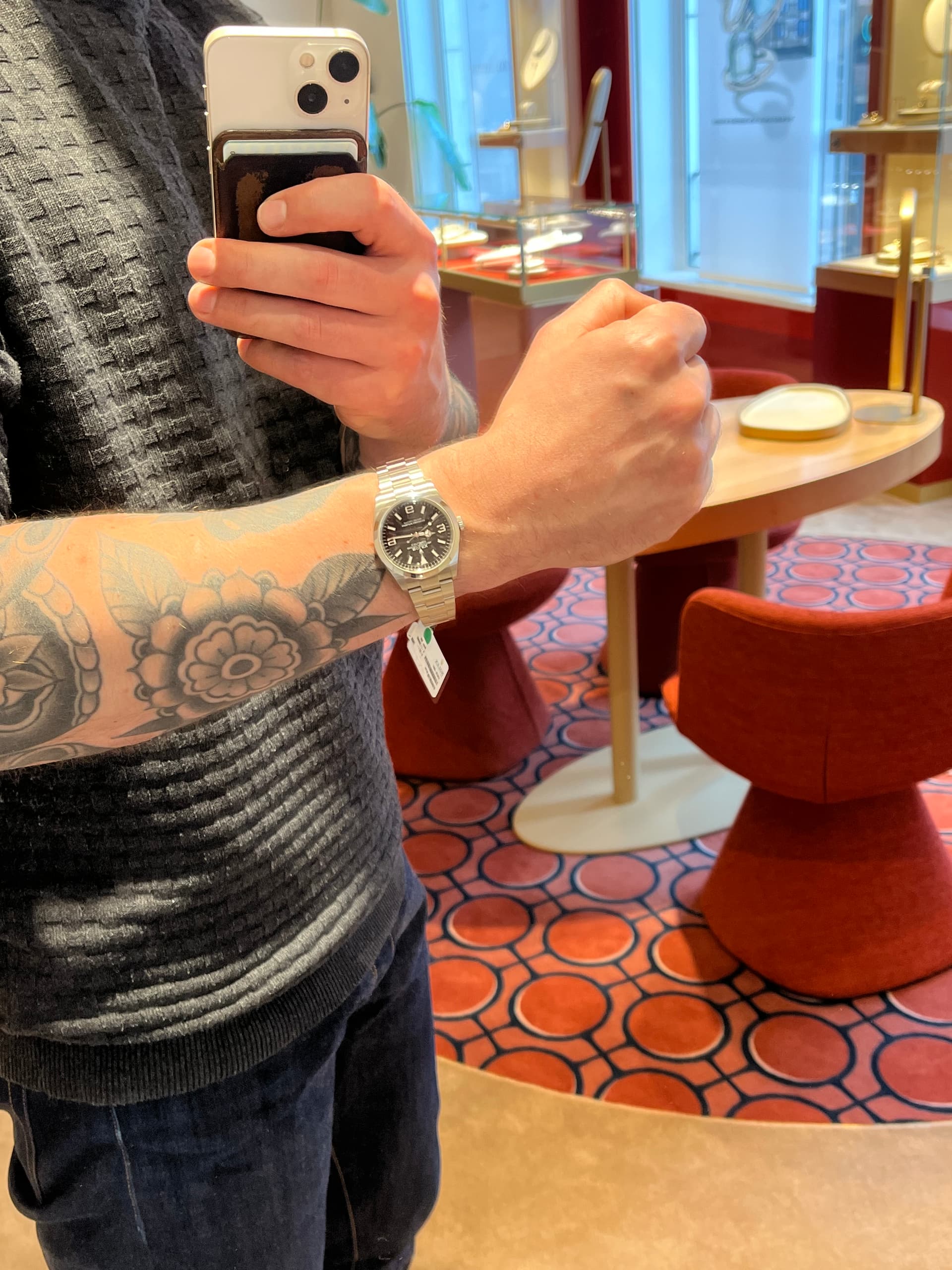 Toen ook maar eens de Explorer 40 gepast en nu 't dilemma; ga ik voor de classic 36 of de meer sportieve 40, want qua formaat kan ik ze beide wel hebben. Vooralsnog neig ik naar de 36, maar ik ga over een tijdje nog maar eens een keer passen.