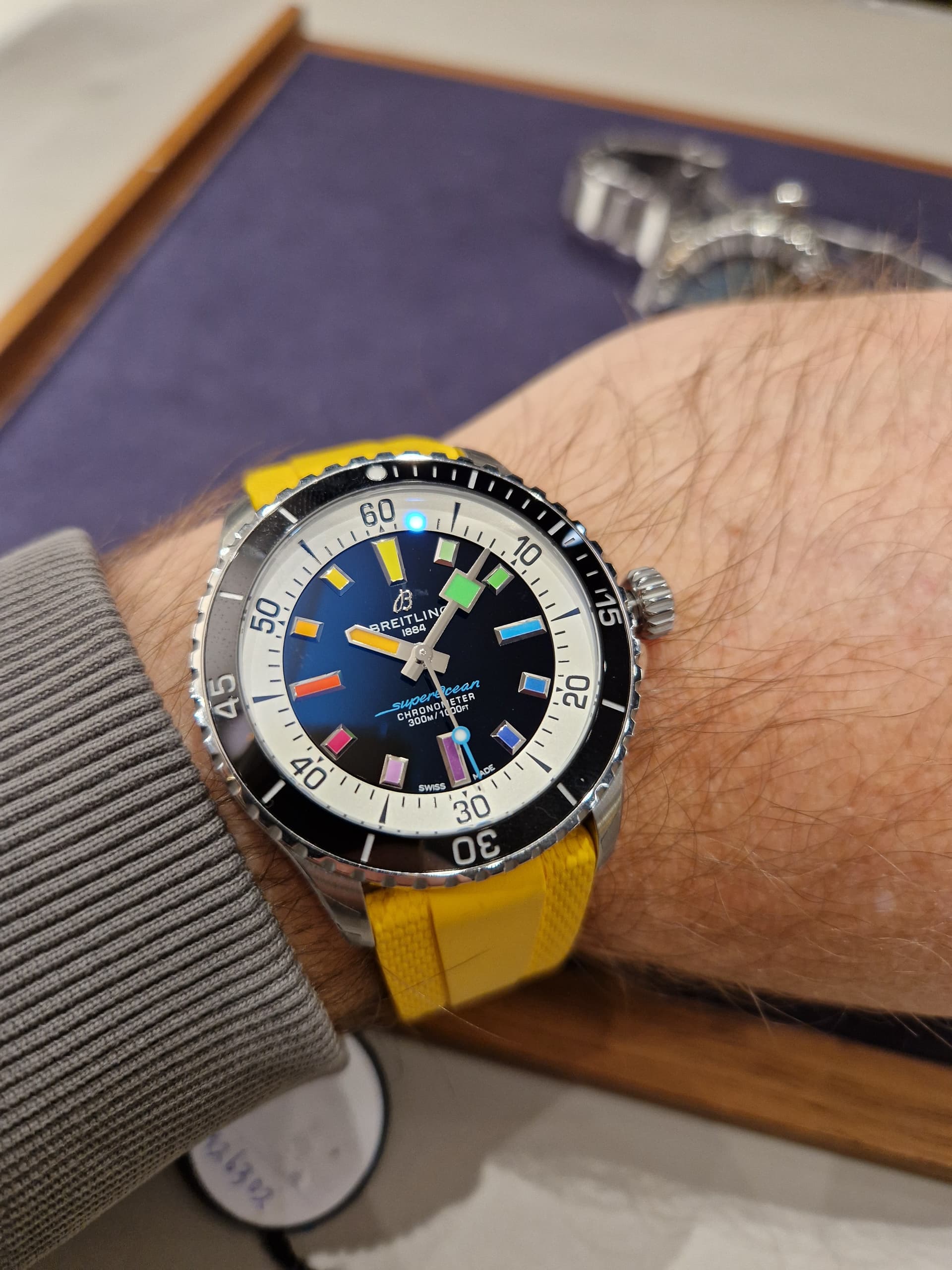 Bij het verlaten van de zaak ook nog een leuke Breitling pet cadeau gekregen.