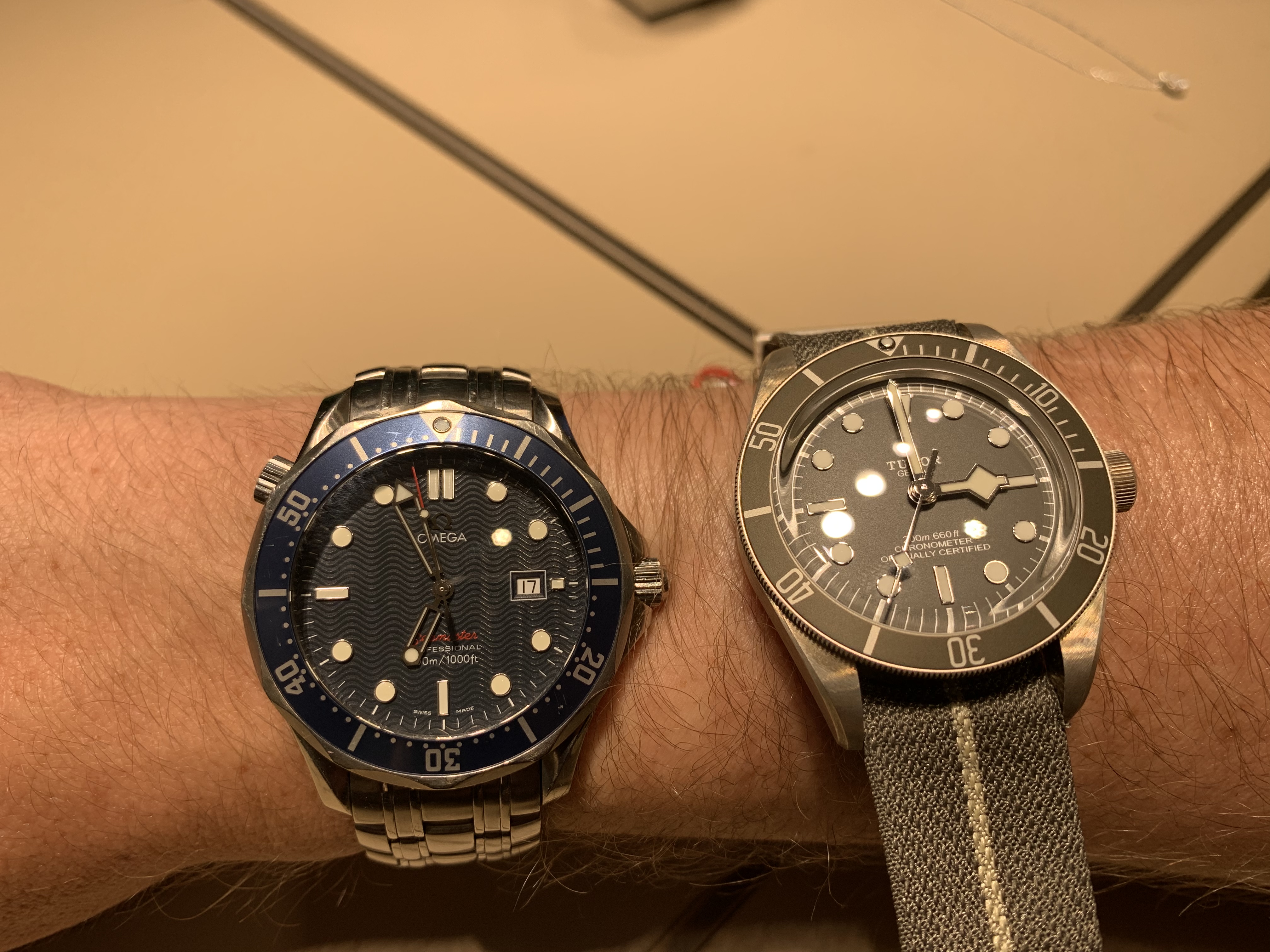 Die zilveren Black Bay in 39mm jeukt nu wel behoorlijk! De standaard Nato band staan hem ook goed en zit lekker. De blauwe haalt het niet bij de blauwe SMP300, als ik eerlijk ben.